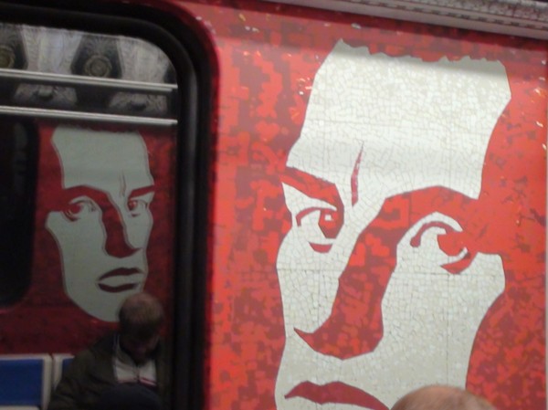Я бывал в Киеве, когда внутри вагона всякой там пивной рекламой обклеивали, причём наших, Вагонмашевских Пришельцев. Но тут такого ощущения нет. Кое-где не аккуратно наклеено. Но в целом, для Питера это первый подобный опыт. У меня пока что хорошие ощущения. Особенно нравятся вагоны по тематике станций. В особенности, где Маяковский.