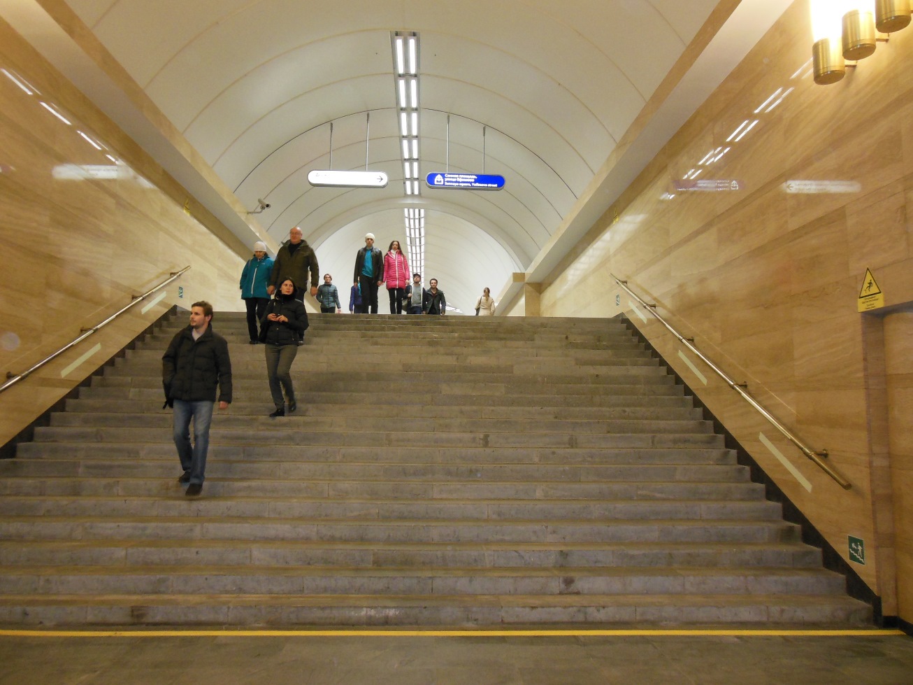 Нам предложили покинуть остановившийся эскалатор и все, кто находились на нём, пешком прошагали наверх.