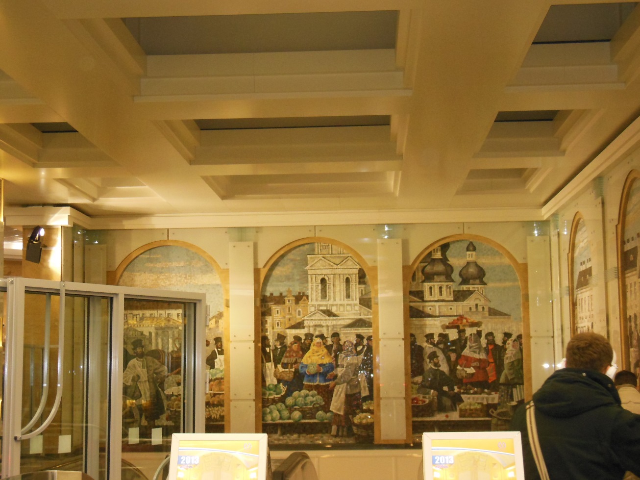 Лично я подметил уникальное расположение мозаик над эскалатором, такой угол использован впервые.