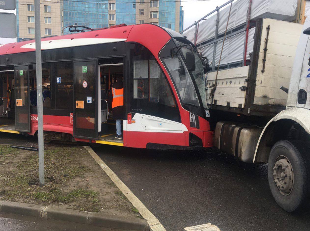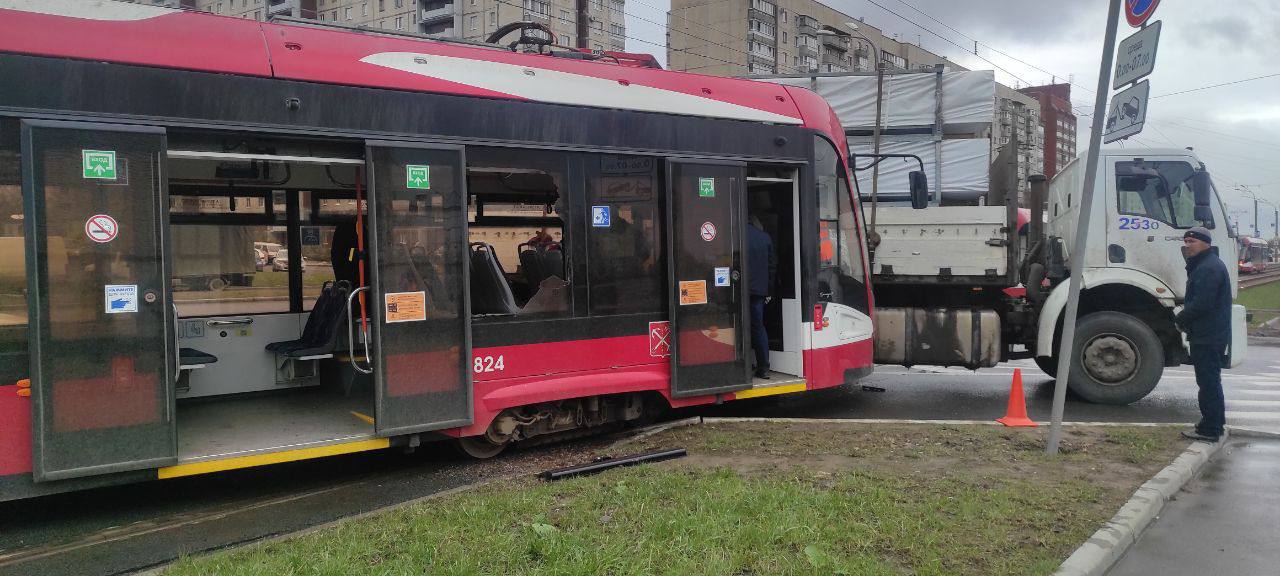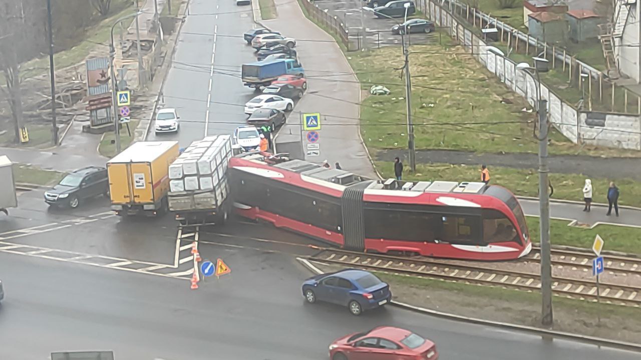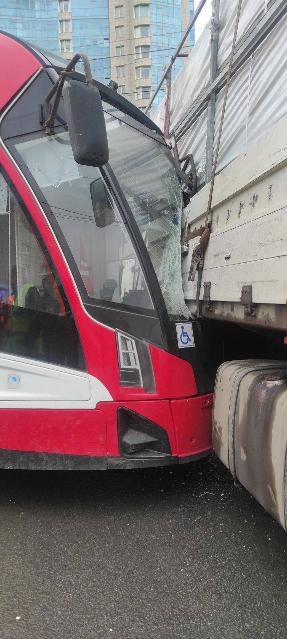 Сегодня, 23 апреля 2024 г. произошло ещё одно крупное ДТП с трамваем. В этот раз на углу Мурзинской и Обуховской обороны грузовик не пропустил трамвай и произошло ДТП со сходом. Сошли обе телеги. Передняя вправо, задняя влево. Традиционно, при ДТП выбилось боковое окно. Так происходит на всей продукции ПКТС. Говорят, из-за неправильного центра тяжести. Но хз, как оно там. По факту, стёкла что у троллейбусов, что у трамваев бьются даже от кочек или других перепадов высот.