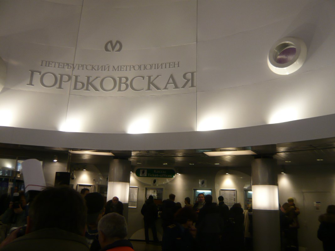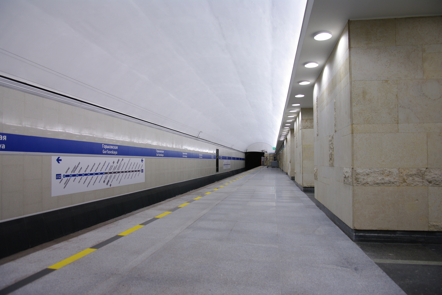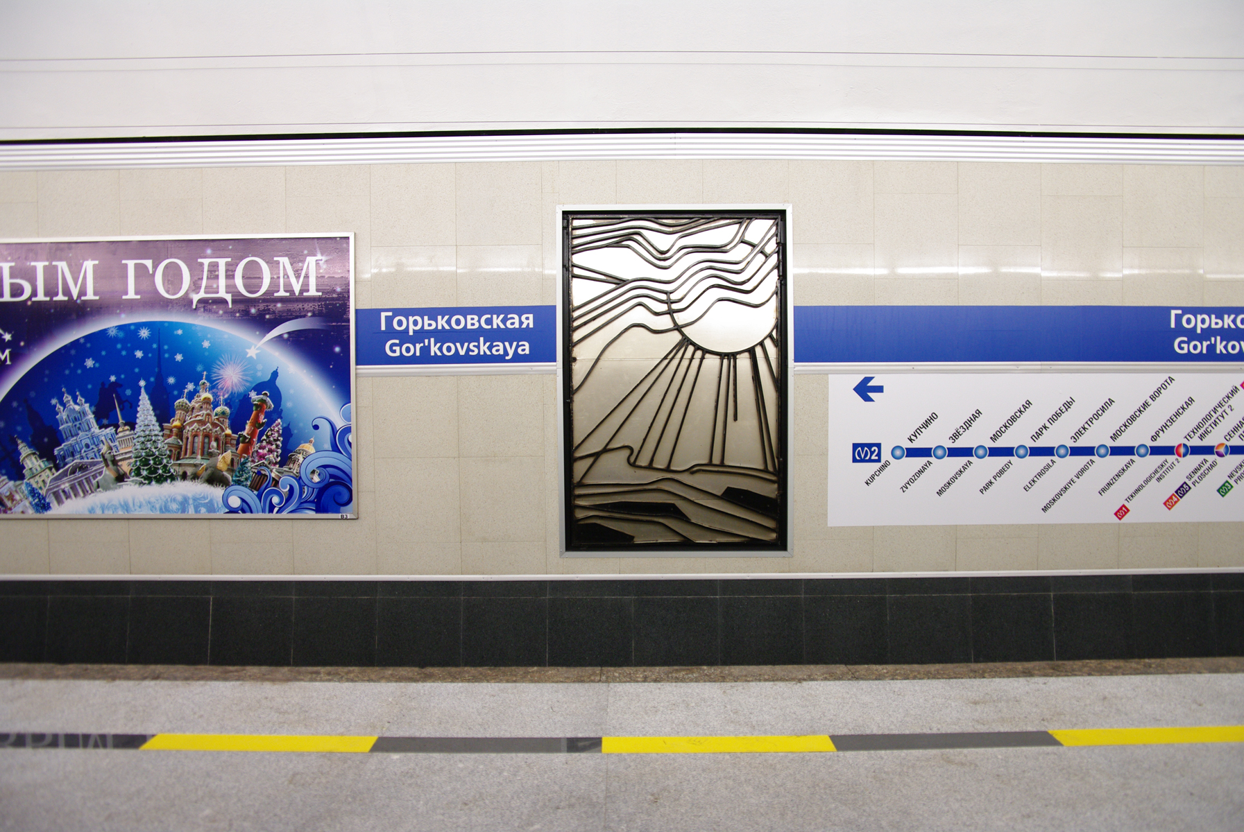 станция ну очень не понравилась. особенно вестибюль. летающая тарелка, как оказалось, превратилась в коровью лепёшку (верх здания почему-то коричневый), вымя собрано отвратительно, а на кой лях оставили пространство вокруг него не закрытым, а только поставили решётки - вообще мне не понятно. в общем, мне показалось, что проект вестибюля делал пациент псих больницы на Матисовом острове. ну и выше сказали, что цвет стен стилизован под коровью шкуру. в общем, название - Горьковская, силуэт - летающая тарелка, суть - молокозавод.