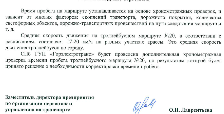 А по поводу жутких расписаний, как-то раз меня конкретно задолбало постоянное таскание троллейбусов №20, аж даже написал электронное обращение в Организатор перевозок. Ответили вот так: