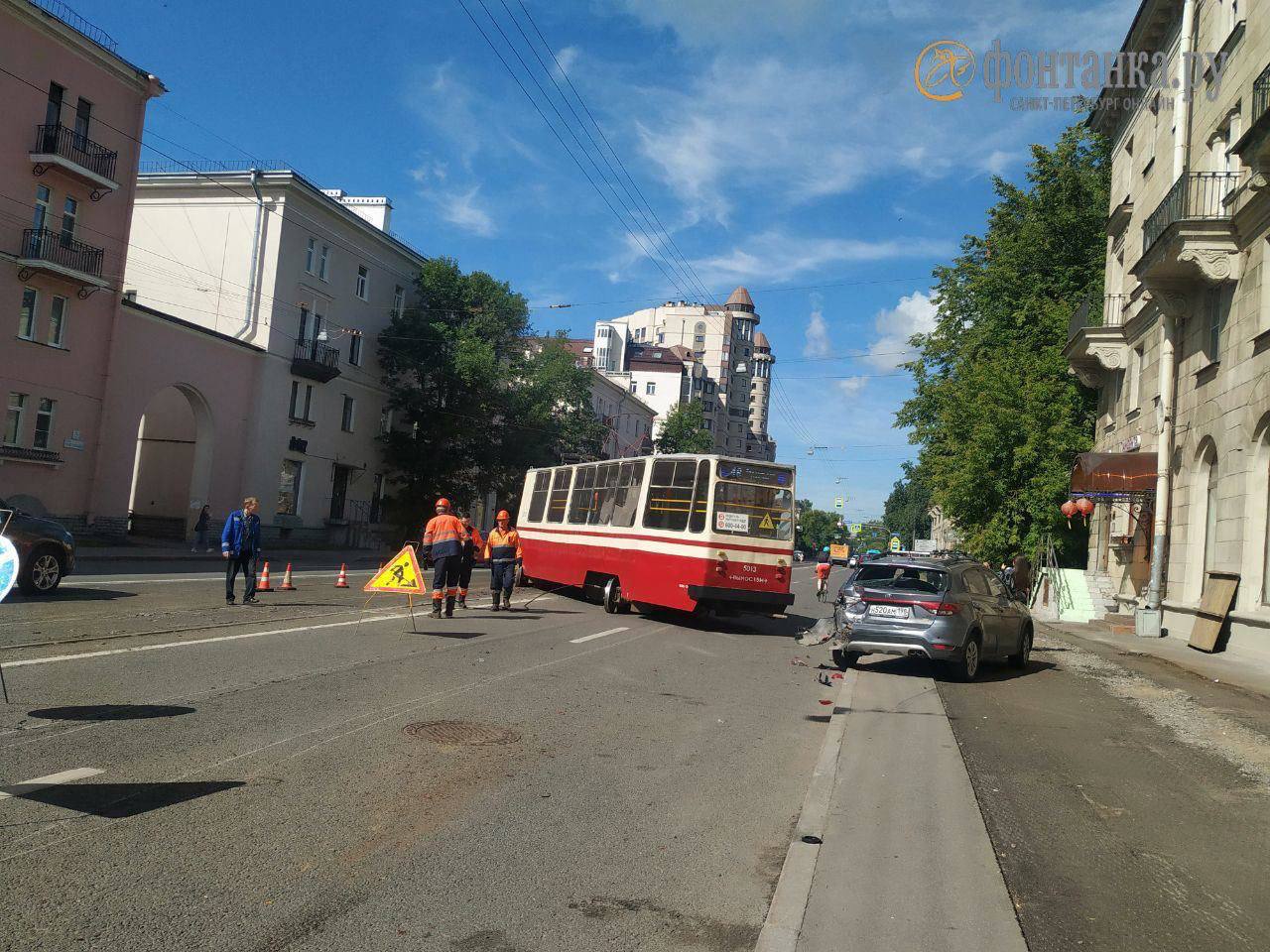 На мосту Александра Невского трамвай откинул рога с фейерверком