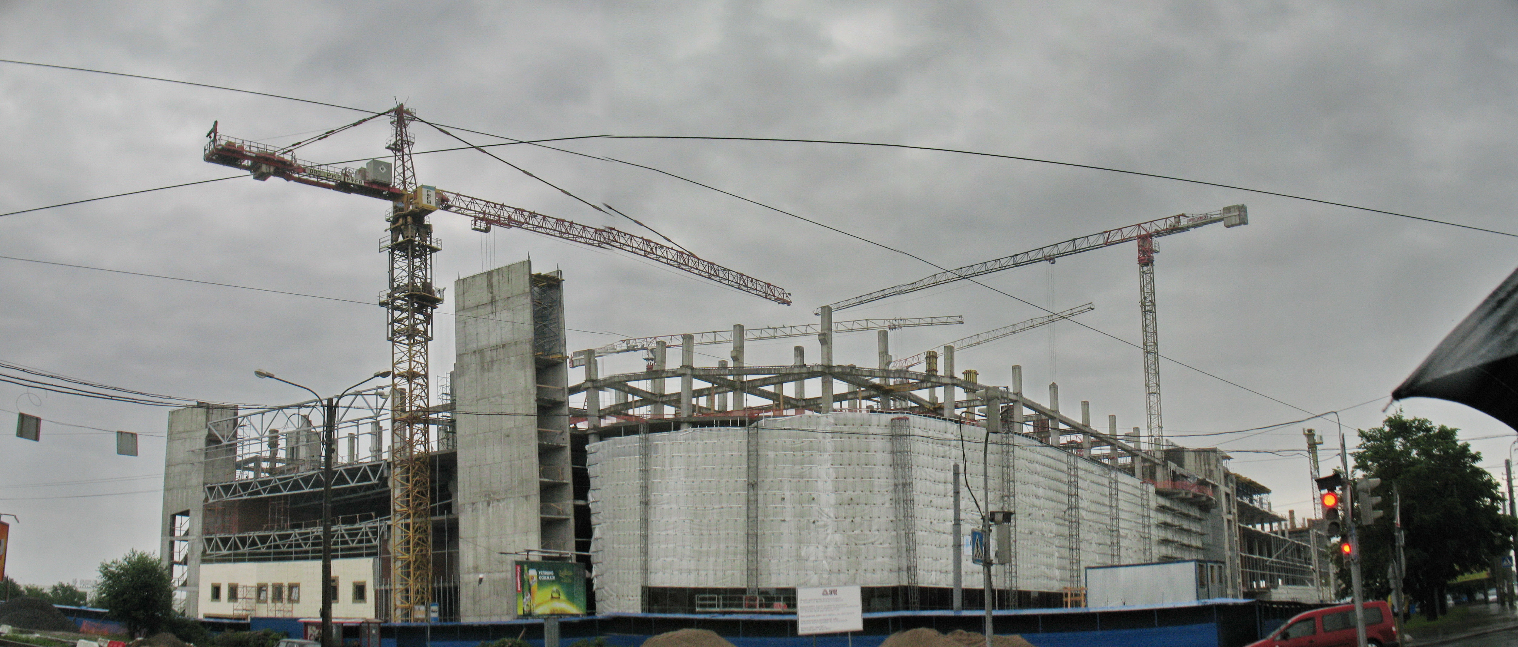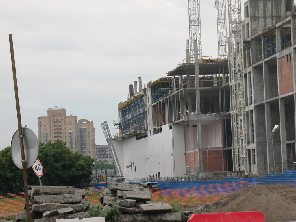Западная сторона ТЦ. Немного видна будущая отделка - светлый камень как на ГАМТ2, если я не ошибаюсь.