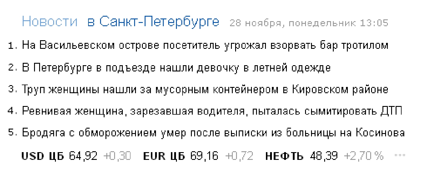 Сначала я подумал, что только в Питере так. Затем пробежался по разным странам. Вот линейка сегодняшних новостей из СПб, Мск, Германии, США, Китая и Японии (как самые контрастные между собой страны, как по объёму, так и по внешнему и внутреннему устройству и разному достатку).