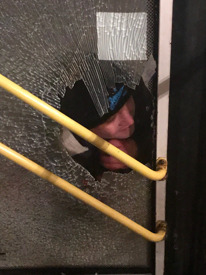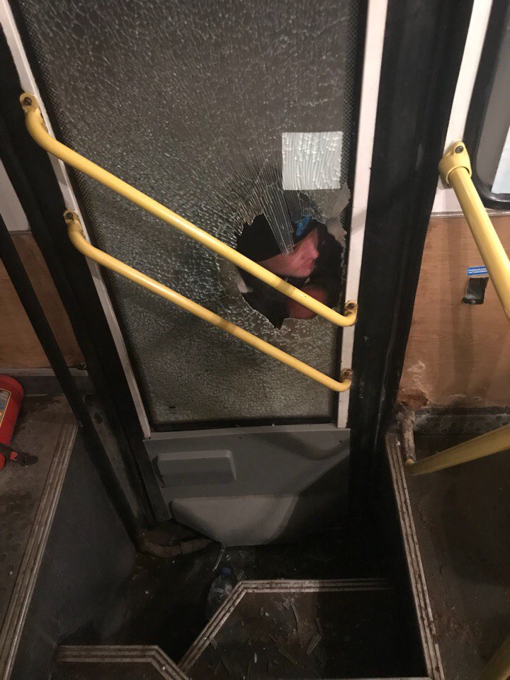 Кто-то разбил стекло в двери маршрутки. Причём здесь футбол?