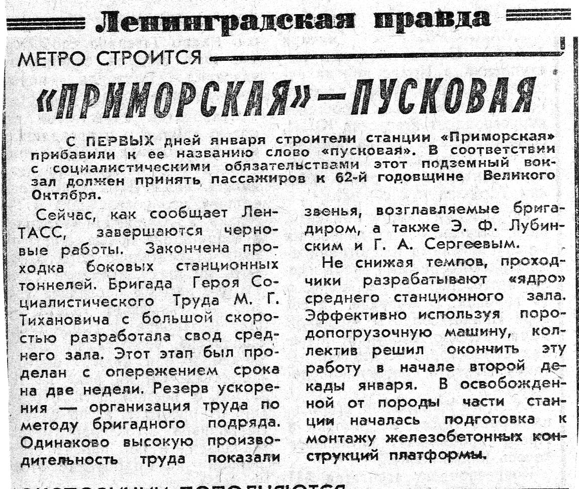 газета "Ленинградская правда" 78-79гг. о строительстве Приморской.
