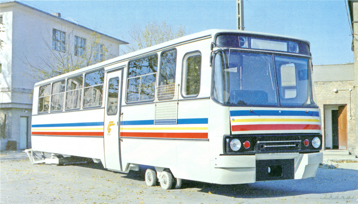 Нашёл также, что в 1994 году, Ikarus General Kft. переоборудовал несколько Ikarus 260, предназначавшихся для России, в рельсовые автобусы. Получившиеся автобусовагоны не до конца отвечали железнодорожным требованиям (вероятно, именно это имелось ввиду в ролике), а также не имели второй кабины управления, в виду чего могли ездить только в одну сторону (это видимо, жёлтые рельсоавтобусы). После нескольких опытных поездок, поезда были обратно переоборудованы в автобусы и проданы венгерской компании Tisza Voln Rt. в 1996 году. Проектируемый кузов рельсового автобуса Ikarus 386 так и не был построен.
