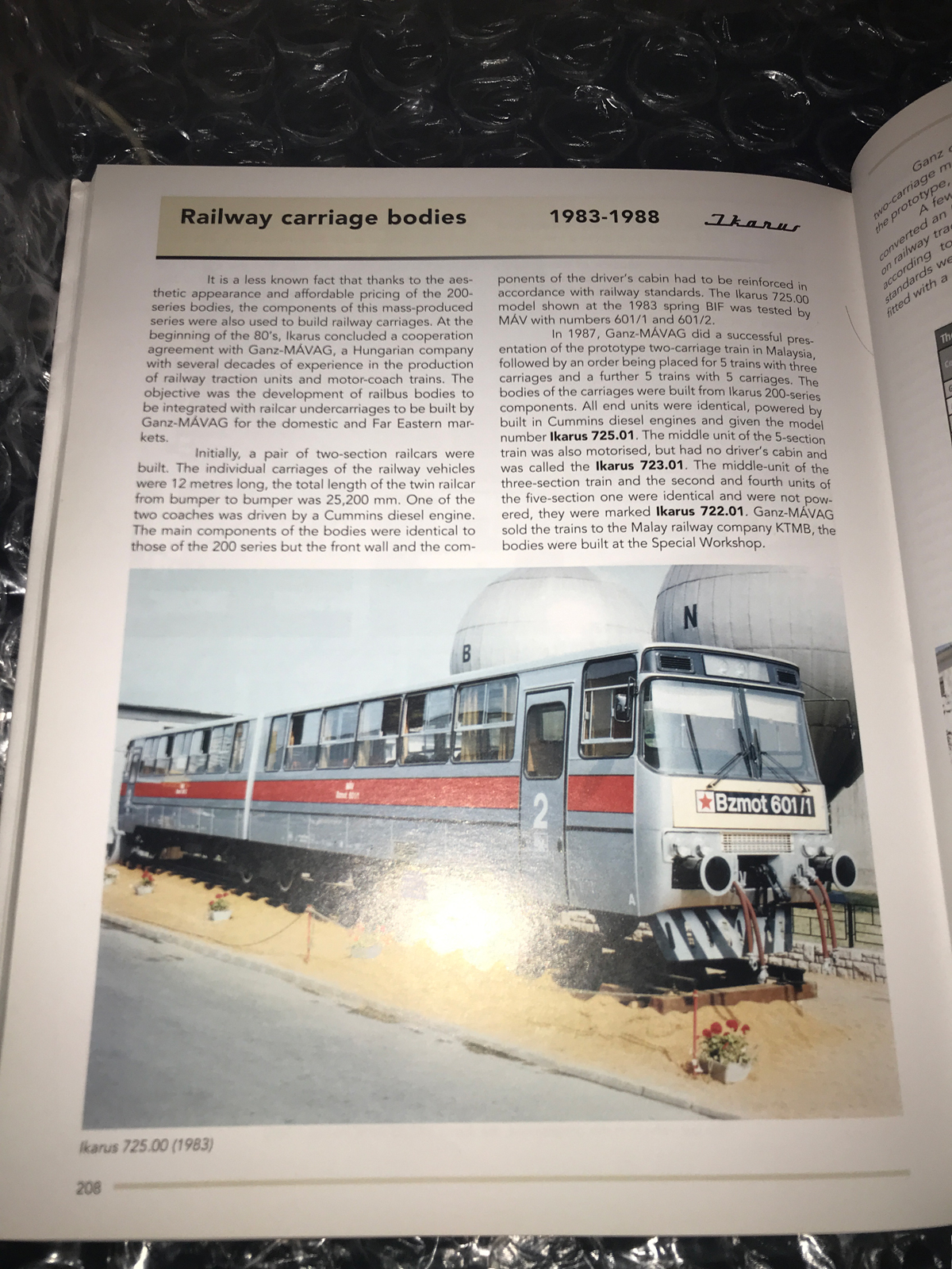В ней описана вся продукция от создания завода Ikarus до его развала в начале 2000-ых. Есть разделы про шасси, кузова, троллейбусы, спец технику. В разделе про рельсовые автобусы описывается несколько моделей, указано что предназначались для Малайзии (в Венгрии проходили испытания, возможно осталось две штуки).