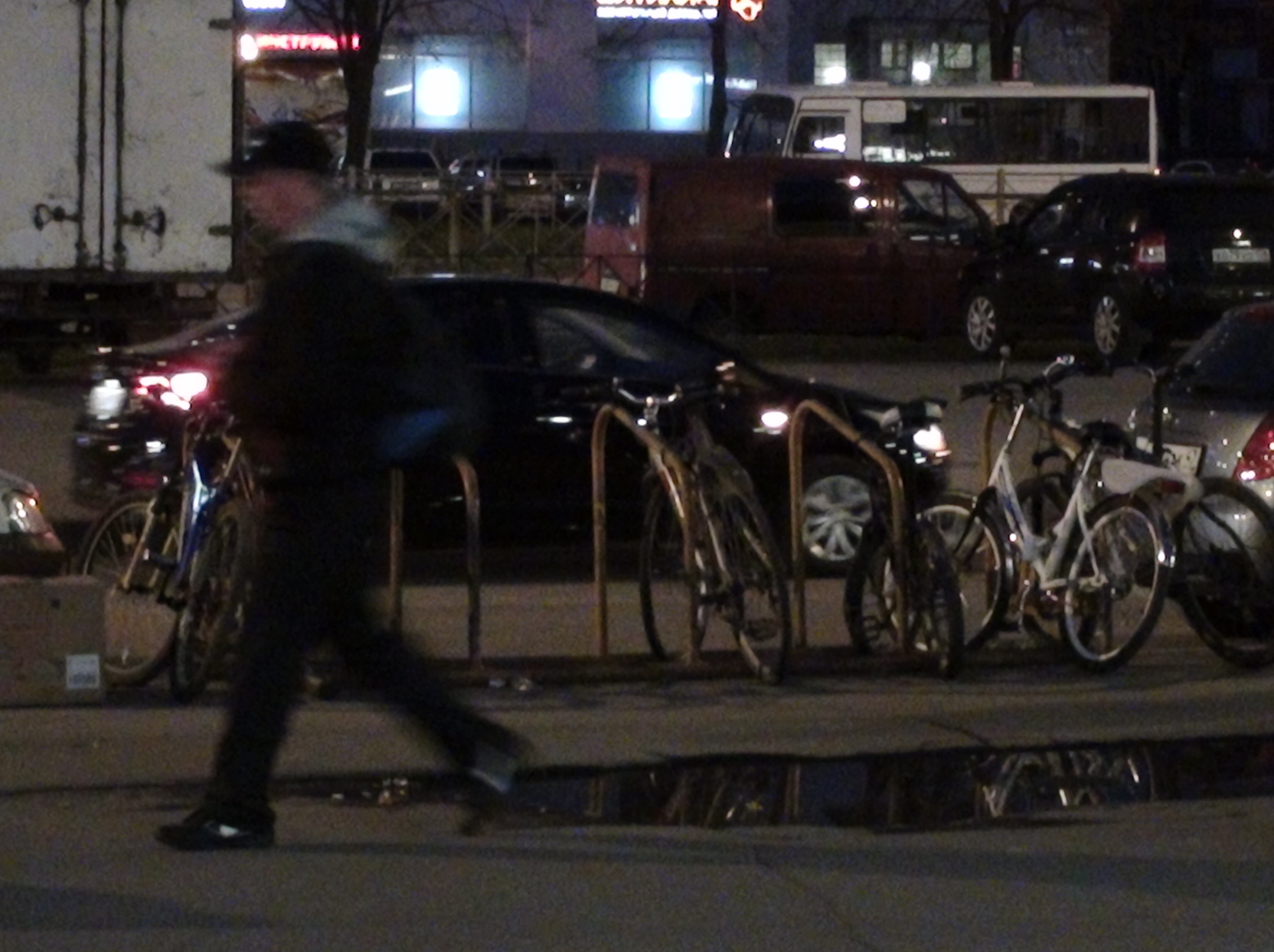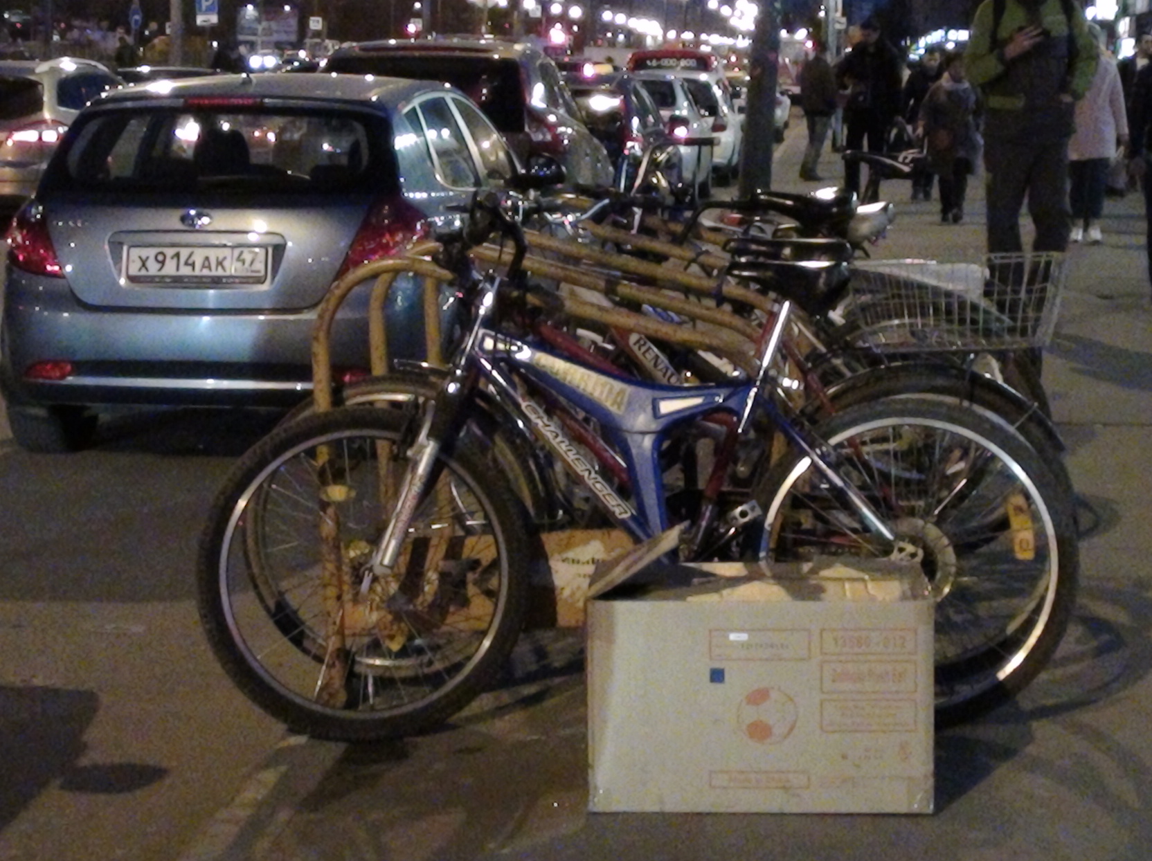 Как видим, есть даже с корзинкой. Великов под вечер не так много. Днём ощутимо больше. Насчёт того, воруют ли велики с таких парковок - под вопросом.