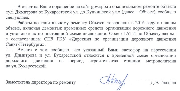C 2013 на перекрёстке ул. Димитрова и Бухарестской ул. стоит светофор по временной схеме, естественно часто ломающийся.
