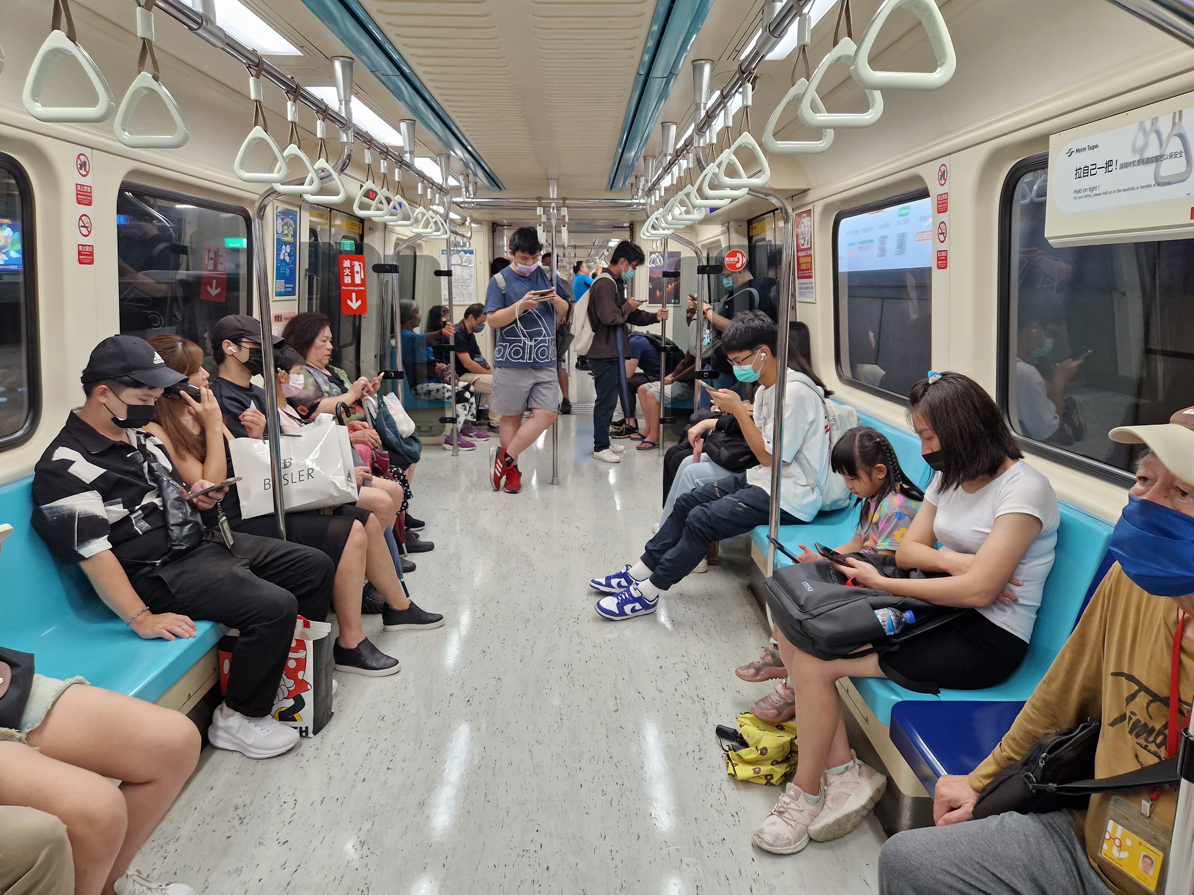 Метрячка - типичная азиатская метрячка, как в Японии, КНР, Гонконге, Сеуле - выходы со станций нумерованные и есть на гугл картах, на рельсы особо не прыгнешь, свои карты оплаты, принимаемые заодно в местных пятёрочках, прикладываем на входе и выходе, стоимость самой карточки - 150 TWD, стоимость поездки - от 20 до 65 TWD, курс к рублю - один TWD на данный момент - почти 3 рубля, 1 EUR = 35 TWD. Кондиционирование не особо агрессивное, но есть и включено. Всё катается, всё работает. Нравится.
