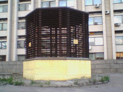 Я, конечно, понимаю всеобщее недоумение. Ремонт киоска выполнялся уже довольно давно. Раньше он был типовой для этой очереди (см. П.П.- Т.И.). Но дело даже не в изменении архитектуры, а в исполнении. На подобных киосках цоколь облицован камнем. А здесь не удосужились даже оштукатурить! А покрасили в жёлтый цвет (ну, почти Росси)