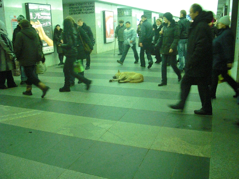 Сегодня на Лиговском проспекте дворняга спускалась по 2-ой (неработающей) машине вниз..... Я обалдел... собака пробежала вниз около сотни ступеней и не упала... Главное неясно ЗАЧЕМ она это сделала...
