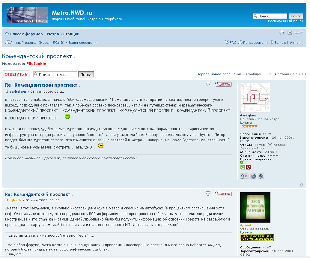 После очистки "Комендантского" от оффтопа или несколько раньше(?) исчезли все сообщения оставленные до 1 июня (а их, насколько я помню, было много). Теперь в теме только 13 сообщений(!) на одной странице. По просьбе модераторов - скриншот :) Это начало темы, первое сообщение - 1 июня 2009года: