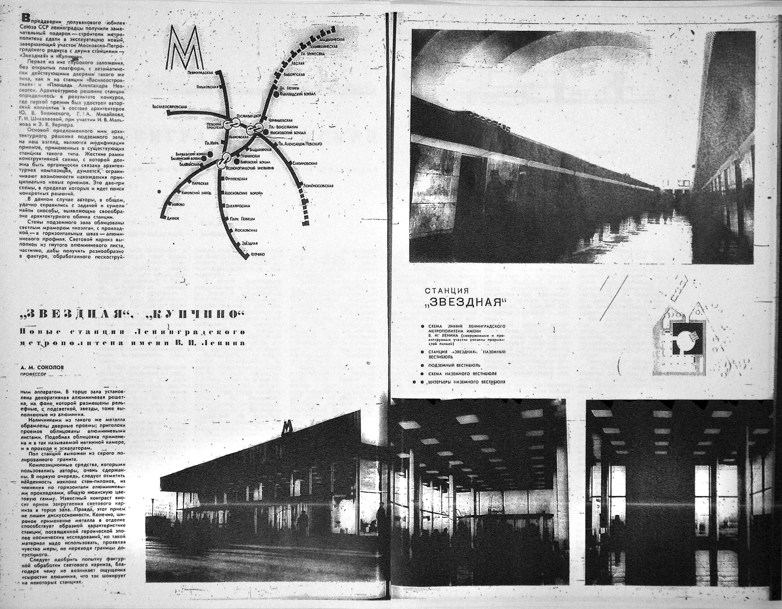 Статья из "Строительства и архитектуры Ленинграда" о строительстве и открытии участка "Автово" - "Проспект Ветеранов". Интересны подробности о проблемах при строительстве станций мелкого заложения (не на много это дешевле и быстрее глубокого заложения). Также указано, что участок "Автово" - "Дачное" закрывался на некоторое время при проведении работ (где-то кого-то когда-то этот момент интересовал).