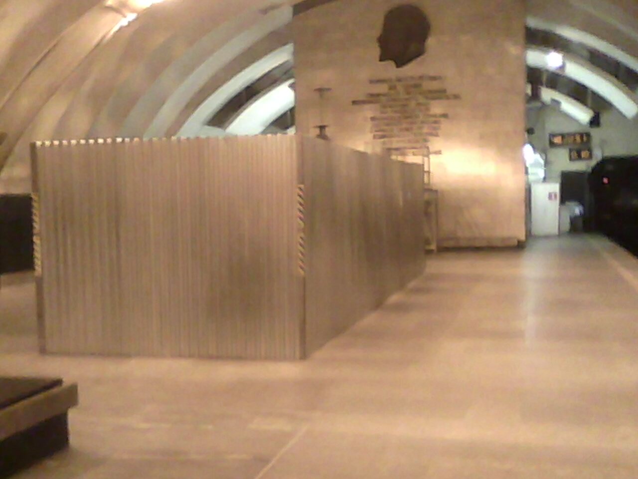 Появились "трамвайные" столбы и пустые лайтбоксы внизу на выходе и в верхнем вестибюле