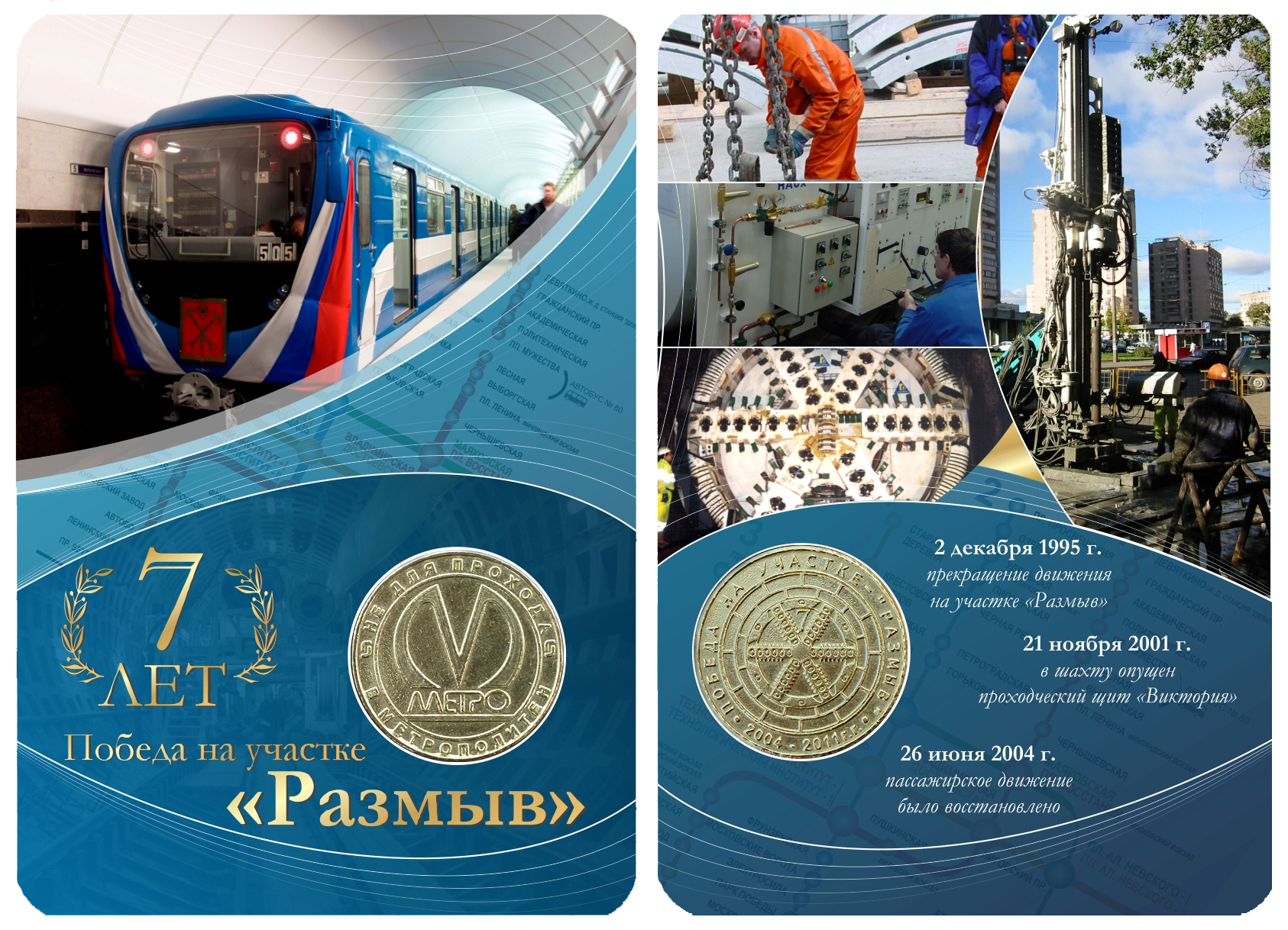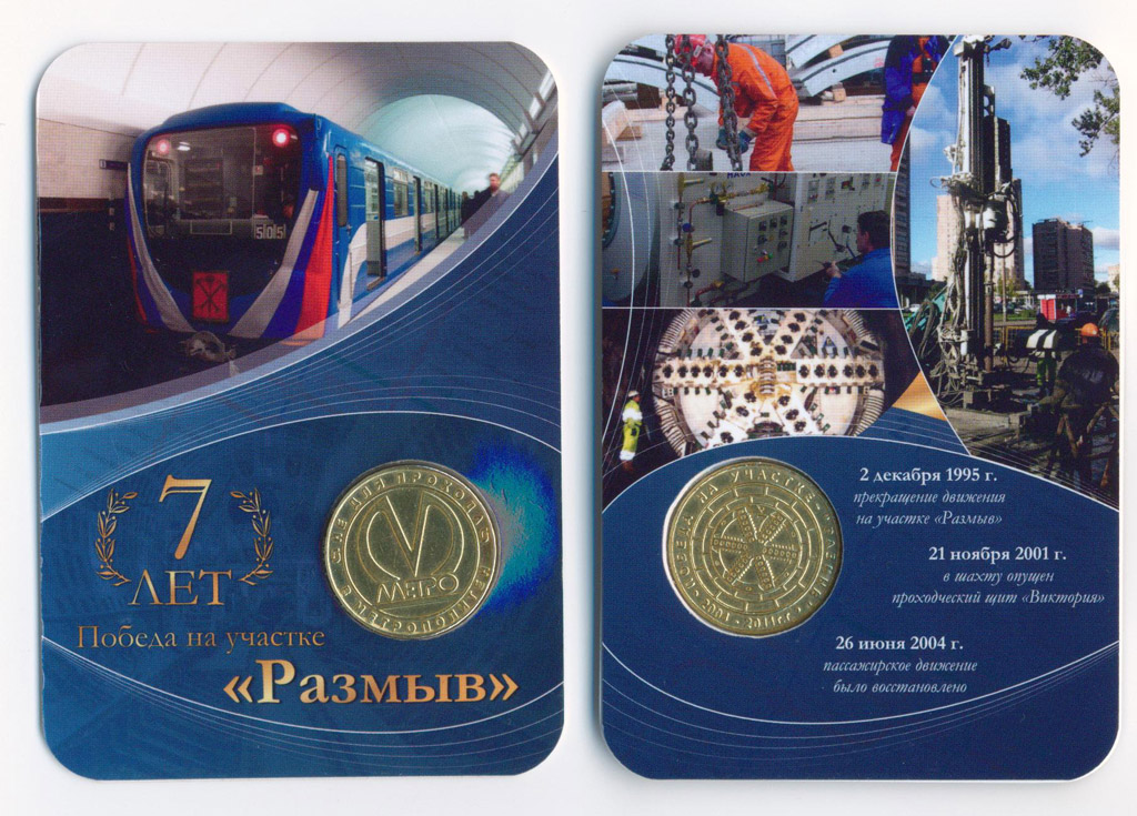 К семилетию восстановления тоннеля между ст. Лесная и пл. Мужества был выпущен памятный жетон "Победа на участке "Размыв" 2004-2011 г.г.