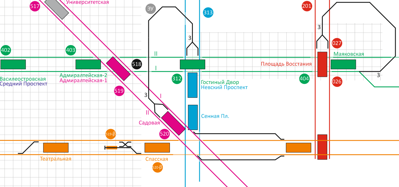 А ничего, что переход с «Сенной площади» на «Садовую» не в торце (как здесь изображено), а в центре зала?