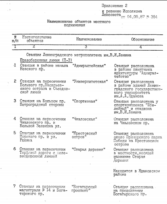 Постановление 1987 года о наименовании станций Правобережной линии