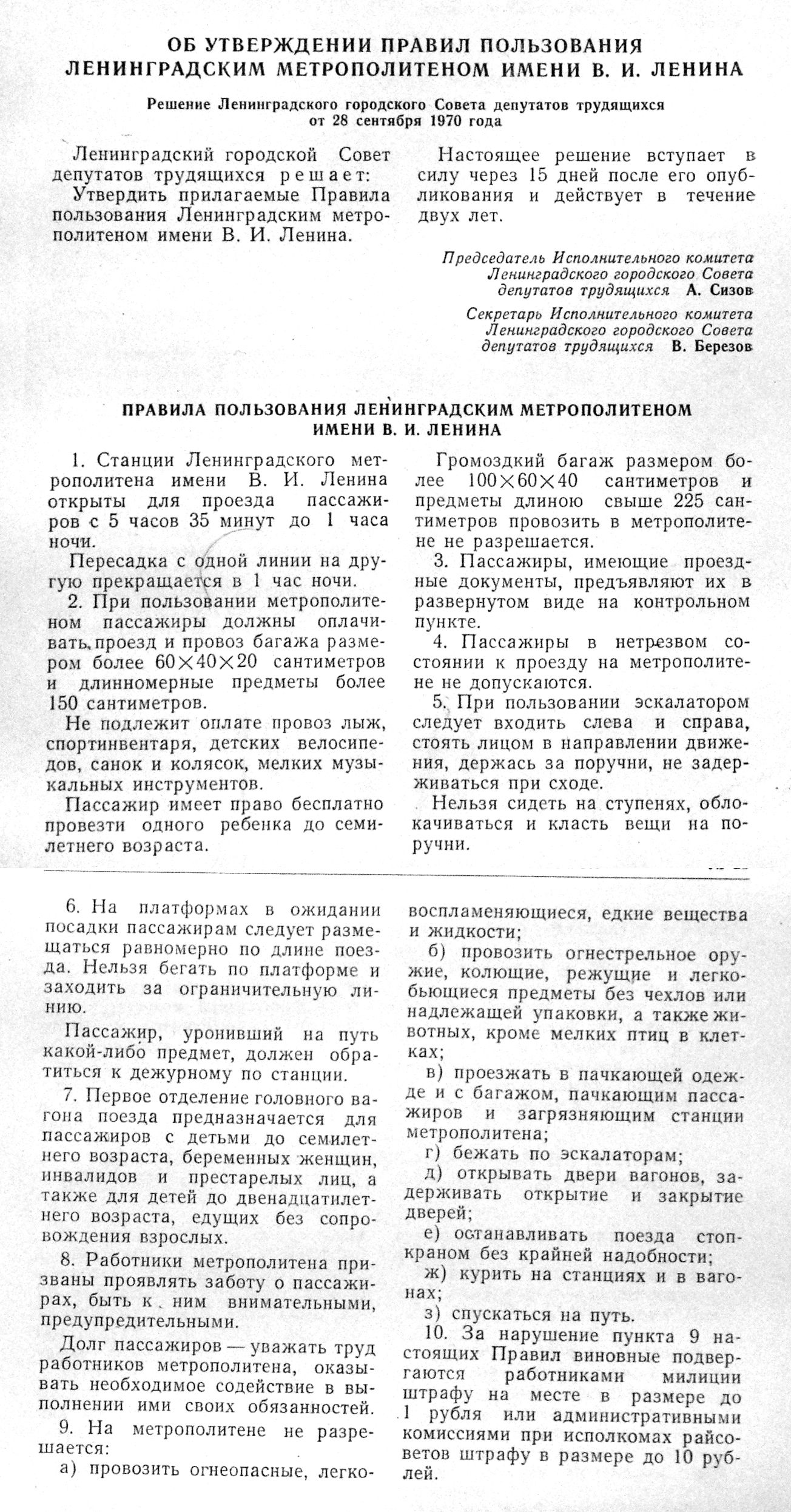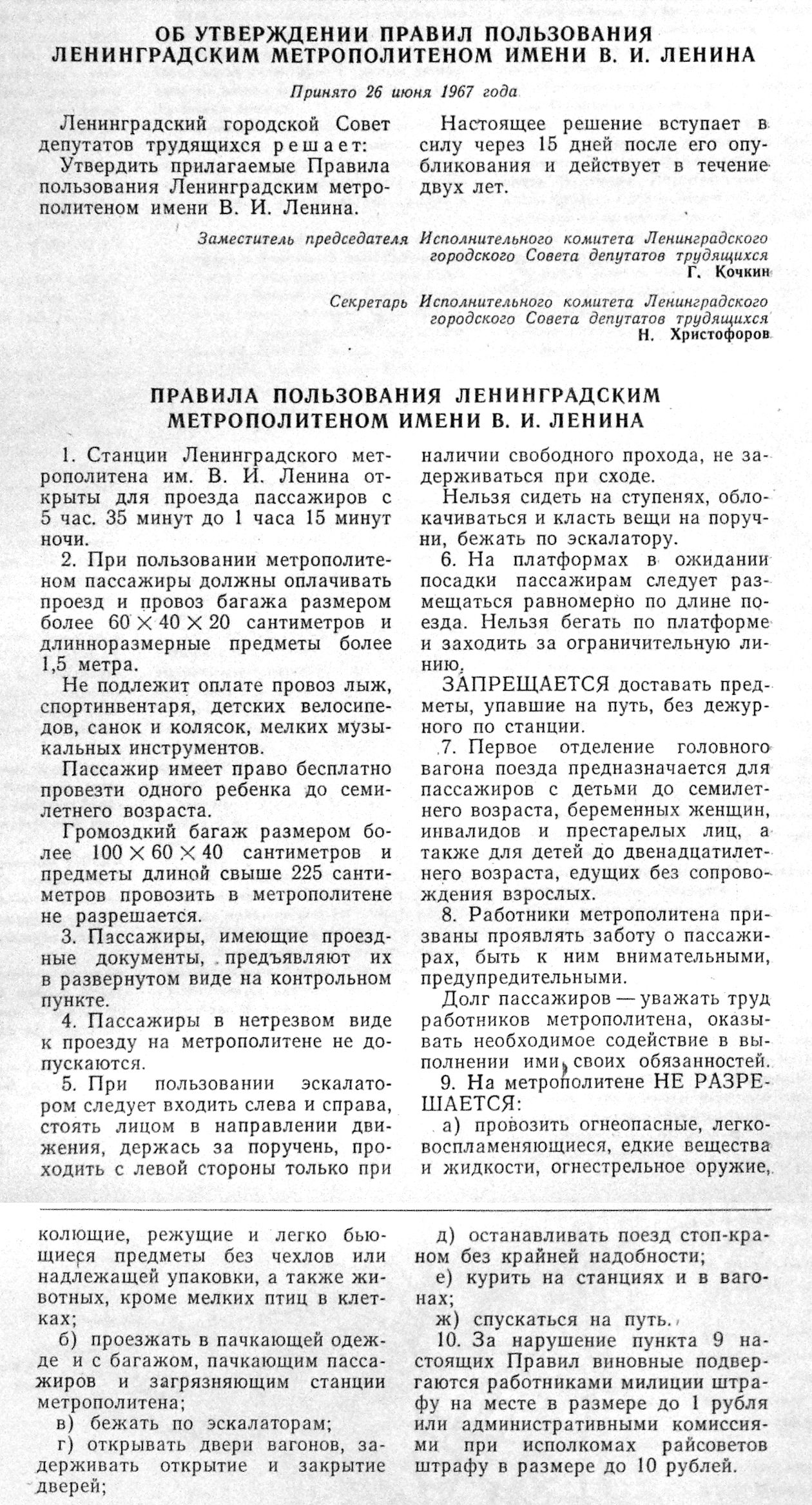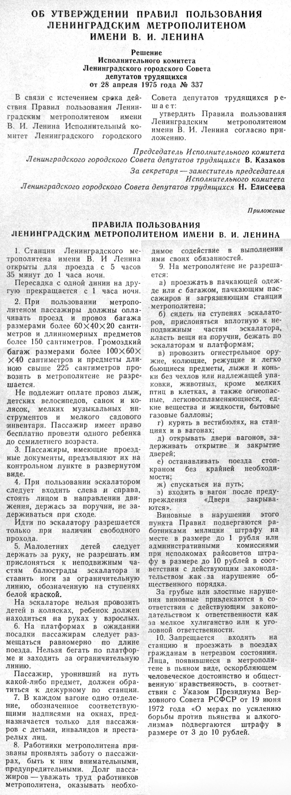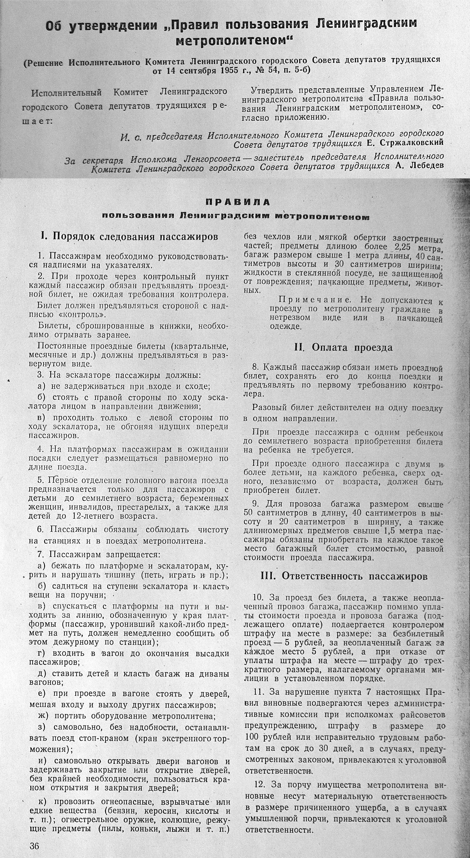 Re: Правила метрополитена — 1955