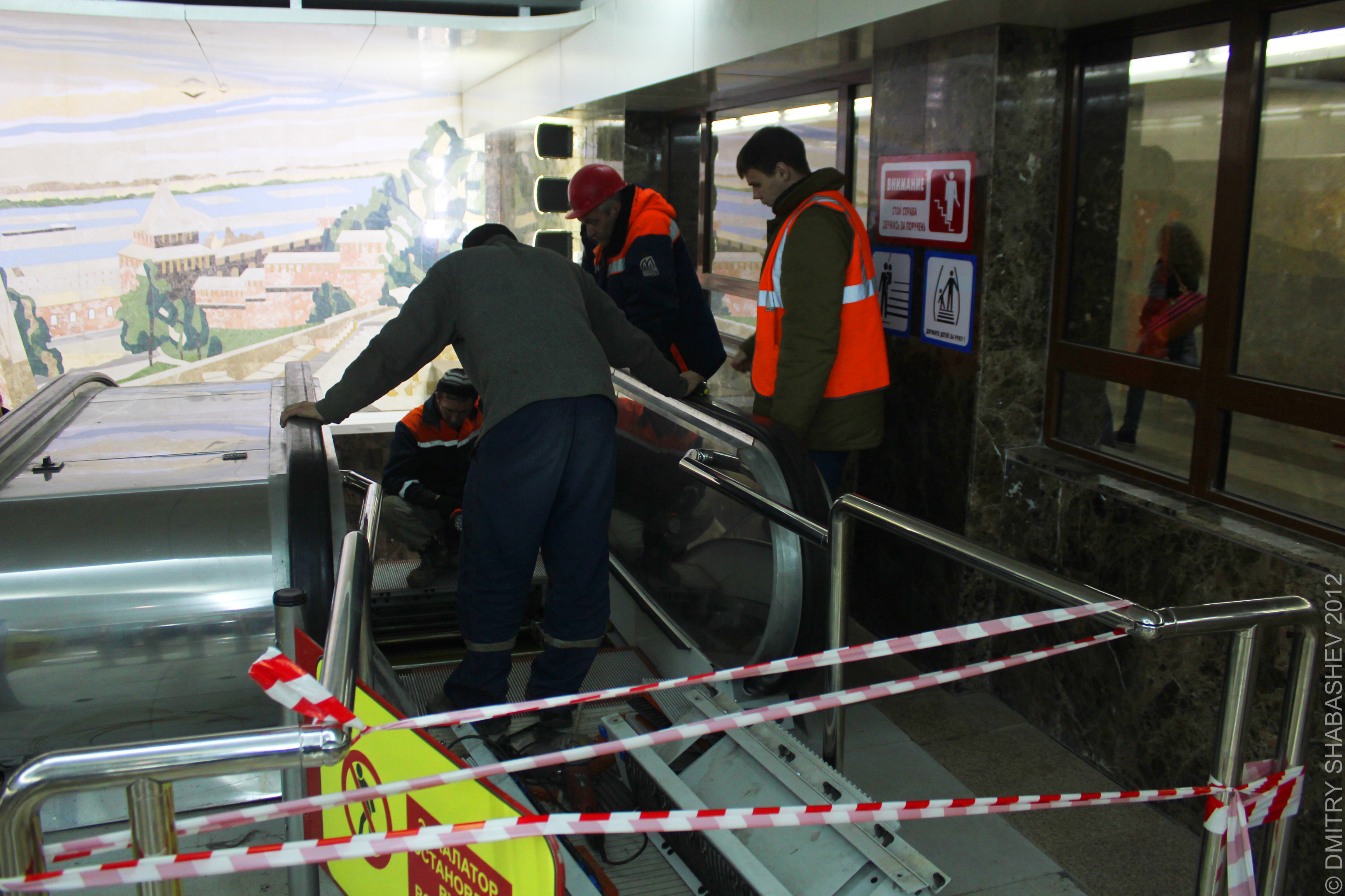 Несколько дней по местным телеканалам показывают репортажи об открытии новой станции и новых объектов дорожной и иной транспортной инфраструктуры. Там сказали, что за первые 2 дня работы пассажиропоток Нижегородского метро уже возрос вдвое, и есть шанс побить рекорд 1985 года, когда в метрополитеном воспользовалось более 5 млн. пассажиров. Действительно, в час пик поезда отправляются практически битком, а в вестибюлях огромные очереди в кассах. В СМИ говорилось, что уже планируется установка дополнительных касс.Открыли сразу с 2 выходами. Первый выход, что на Пл. Горького, оборудован тремя широкобалюстрадными эскалаторами, которые в аврале успели смонтировать, но запустить не смогли. Эскалаторы используются пока как лестницы, в ночное время идет наладка. Потом выложу видео пробного запуска. Второй выход открыли без проблем. Станция оборудована лифтами, которые тоже пока тоже не работают.
