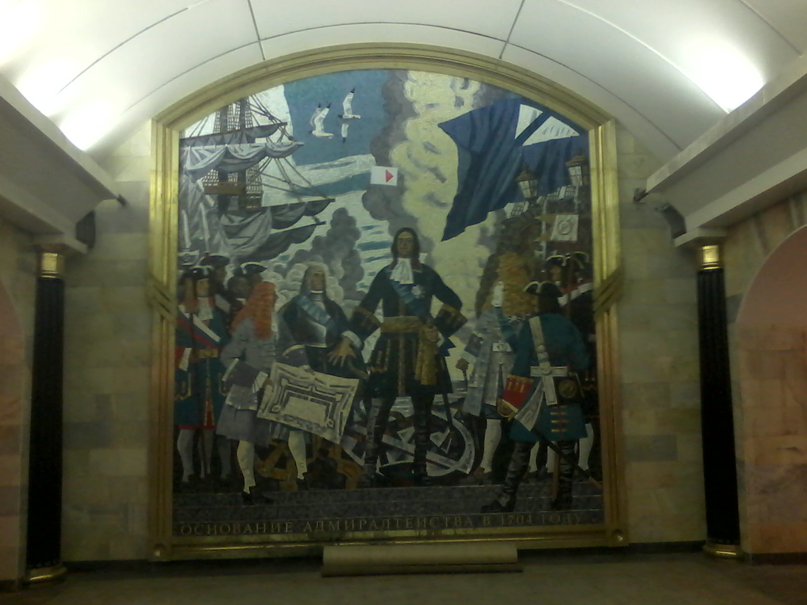 А архитектура удручает. Просто набор классических элементов. Да ещё явный плагиат с "Балтийской", только другие пропорции, материалы и цвета: полуколонны приставленные к опорам сводов, мозаика, якоря на дверях путевых стен, дуги по потолку (правда, на "Балтийской" они - вдоль оси ЦЗ), барельефы мореплавателей (на "Балтийской" они на улице, на павильоне). Нот того качества архитектуры уже нет. Камень у нас фигурно теперь почти не обрабатывают - только плоские плитки. Проработки деталей нет (на старых станциях - люстры, торшеры, скамейки, вентрешётки, оформление потолка). Литьё корявое, а то и вовсе штамповка (решётки на "Звенигородской", брррр). Про мозаики господ Быстровых и говорить уже нечего. Готовимся к подсчёту новых клонов Петра Первого...