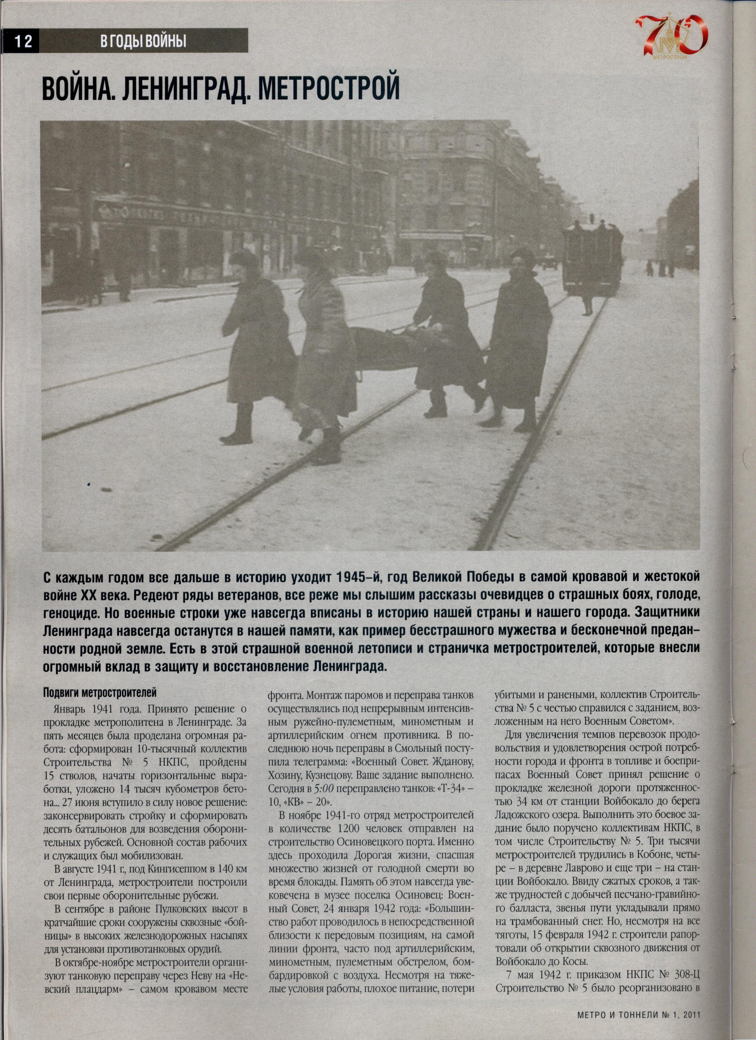 Отсканировал выпуск №1 за 2011 год к 70-летнему юбилею Метростроя. Встречаются весьма любопытные фотографии и информация.