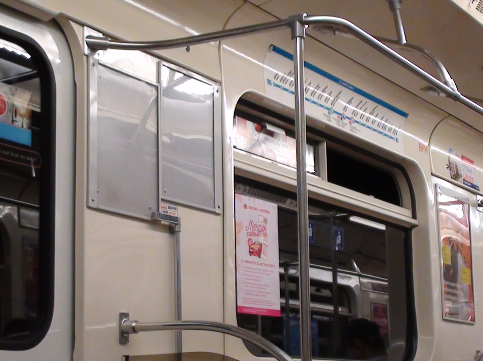 Кто-то здорово отметил АП, и постепенно вкушает прелести взрослой жизни. В вагоне 11108 уничтожена форточка.