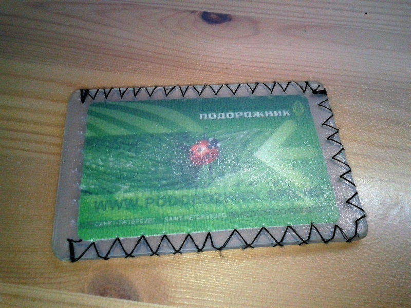 ... вначале была брутальная обложка-сэндвич из толстого оргстекла, перемотанная скотчем, но когда кассиры метро достали меня своими подозрениями в том, что там не одна карта, а больше, то пришлось сделать облегчённый вариант )))