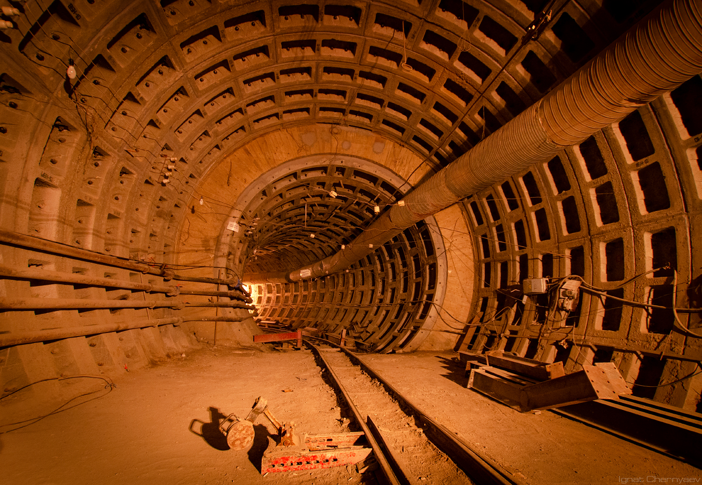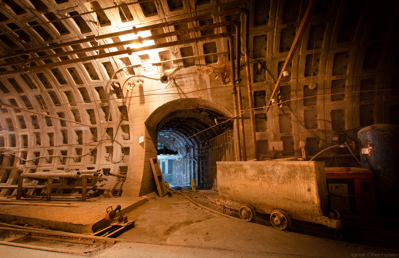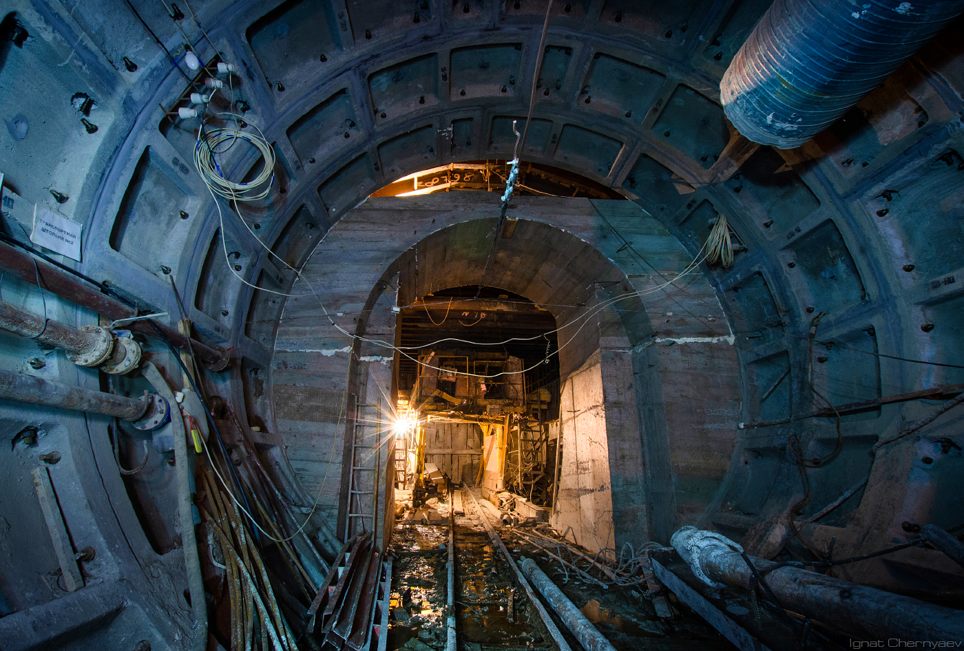 18. Завершу первую часть началом левого перегонного тоннеля в сторону Путиловской уже после выхода щита на его трассу: