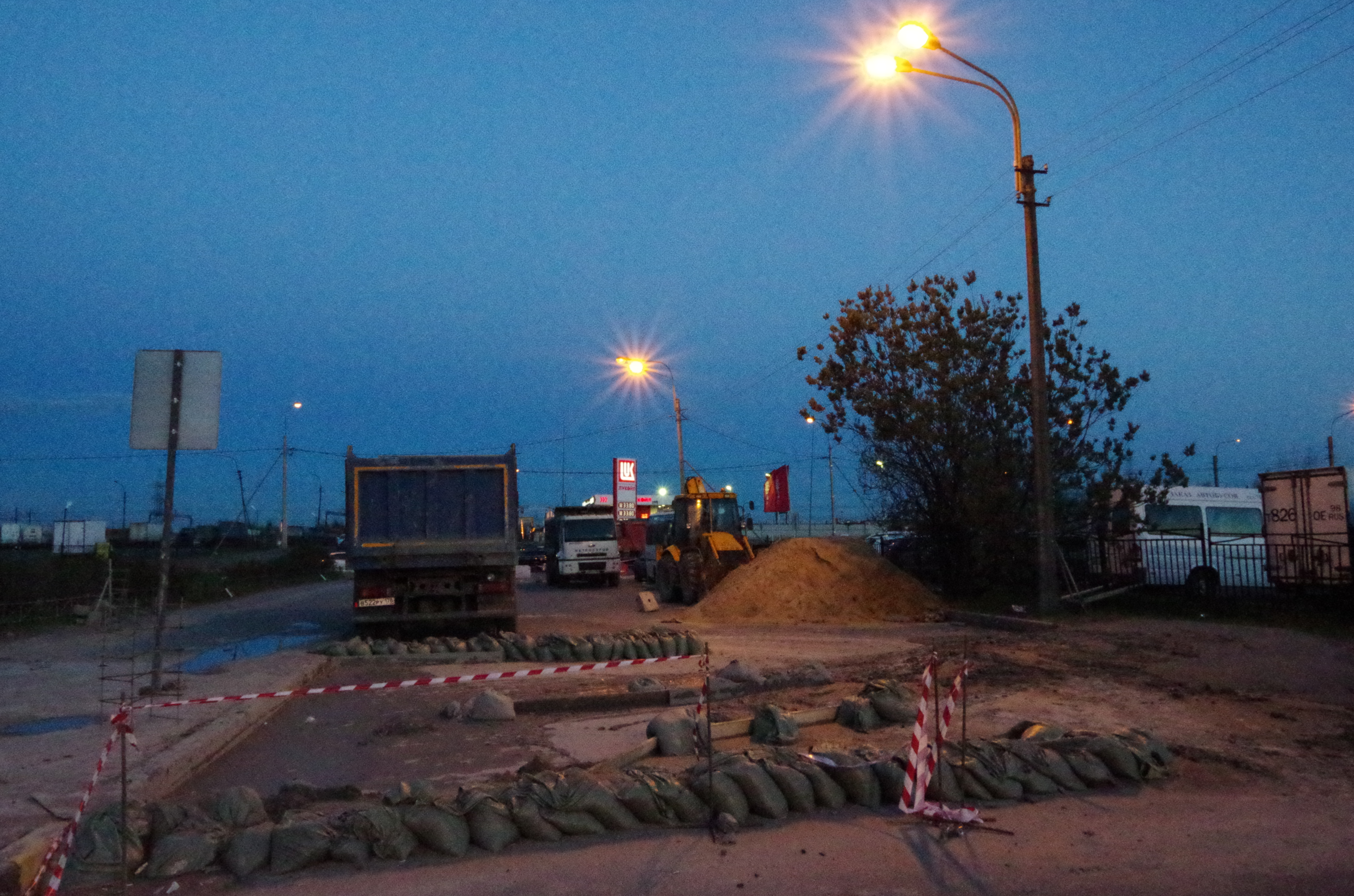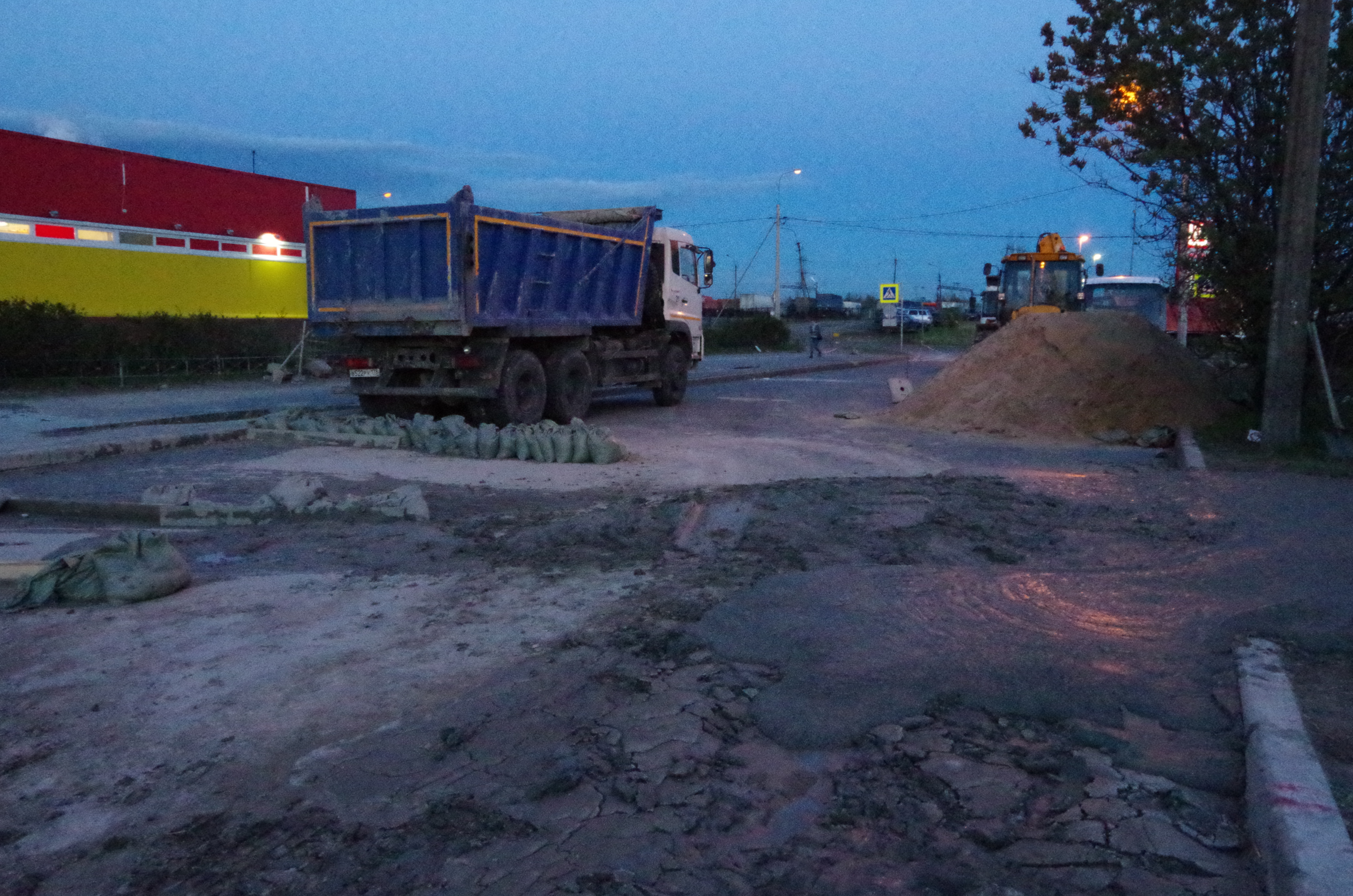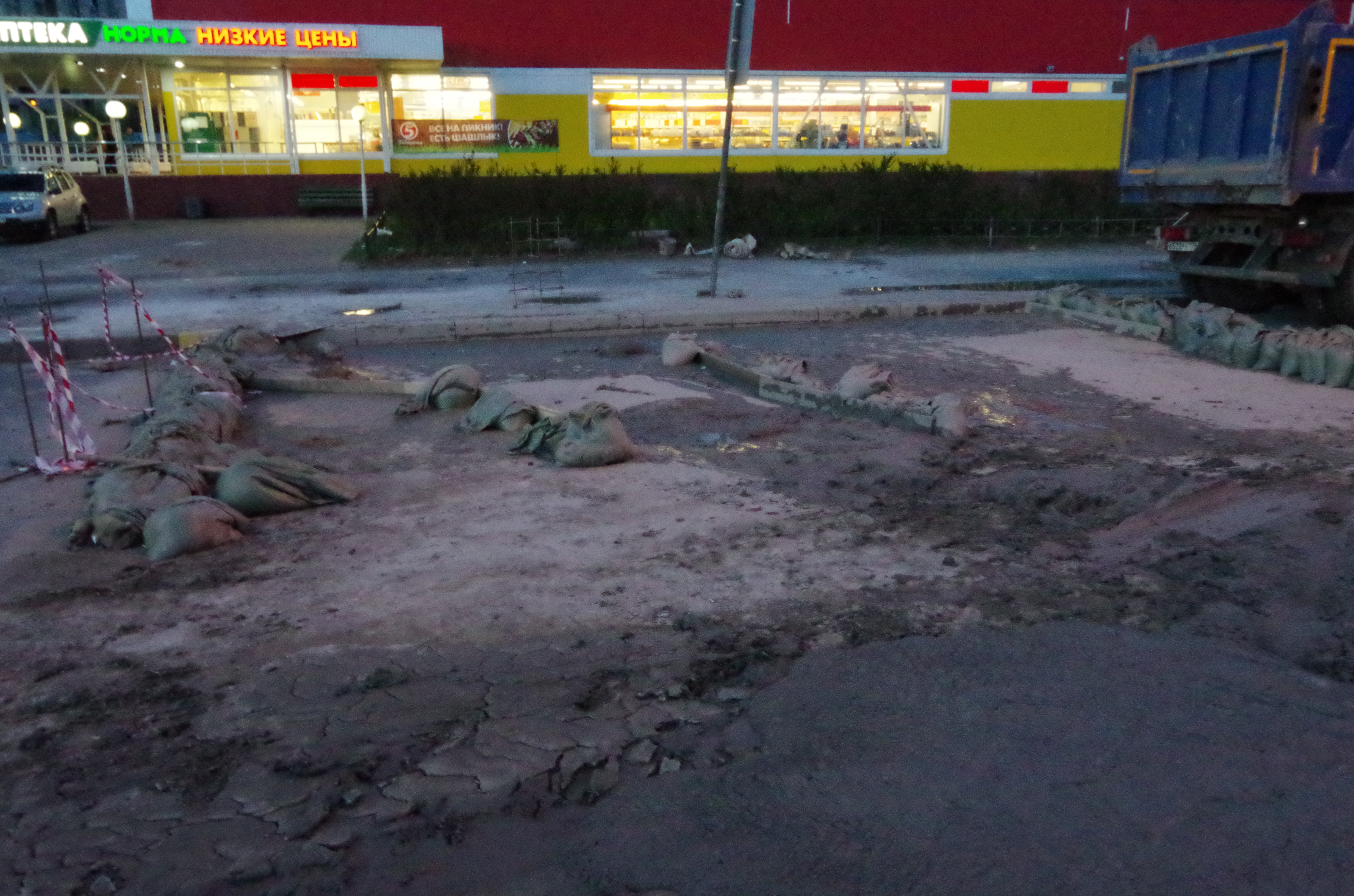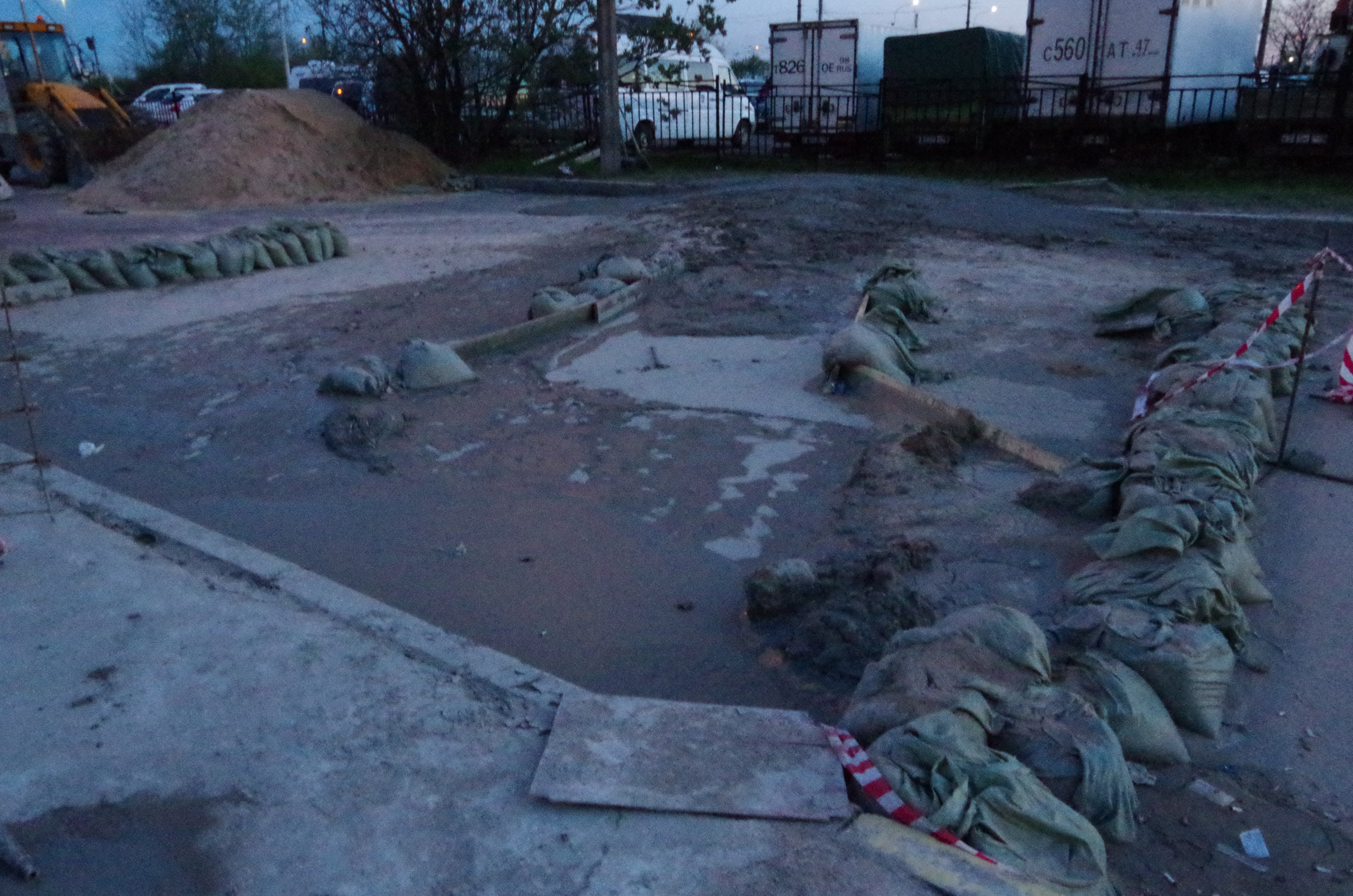 Свежие фотки с места происшествия. По Бухарестской не проехать, все объезжают за Пятёрочкой. Блямба, конечно здоровенная...