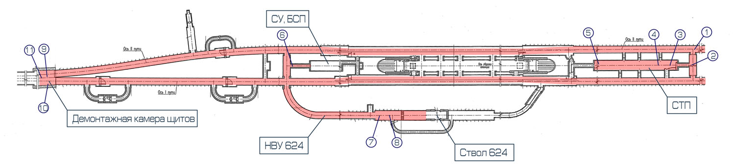 7. Руддвор 624-й шахты в сторону будущего ствола: