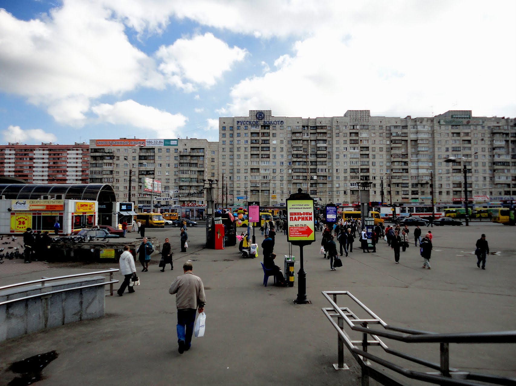 А это двор, фасад вестибюля с другой стороны (позади места съемки - ТЦ "Озерки"). Идет переоблицовка стен "пристройки".