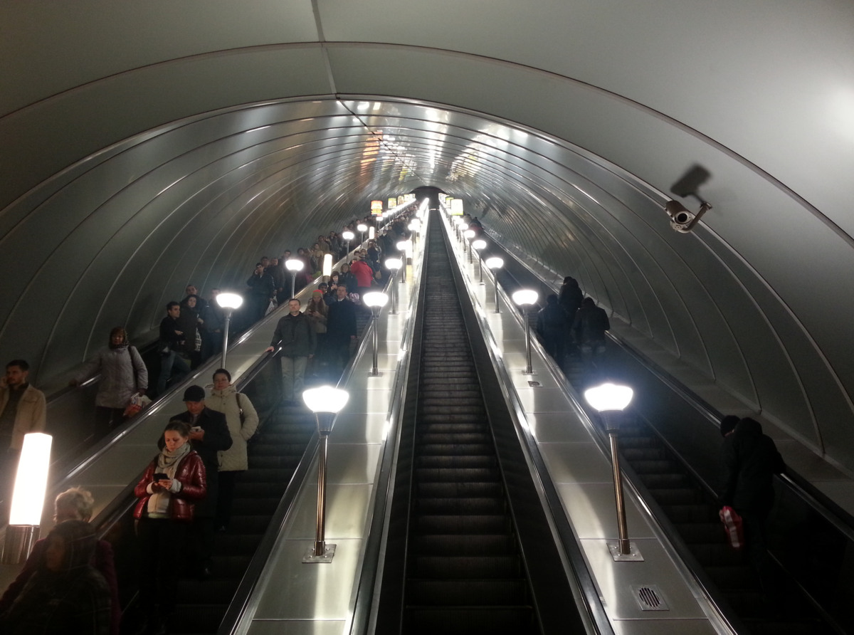 До меня как-то не доходит, почему в наклонном ходе должны быть какие-то повышенные нормы освещённости, аналогичные тем, которые применяются на транспорте (кстати, когда рассматривали вопрос о запрете аудиорекламы на эскалаторах, решили, что эскалатор транспортом не является и поэтому реклама на нём разрешена).