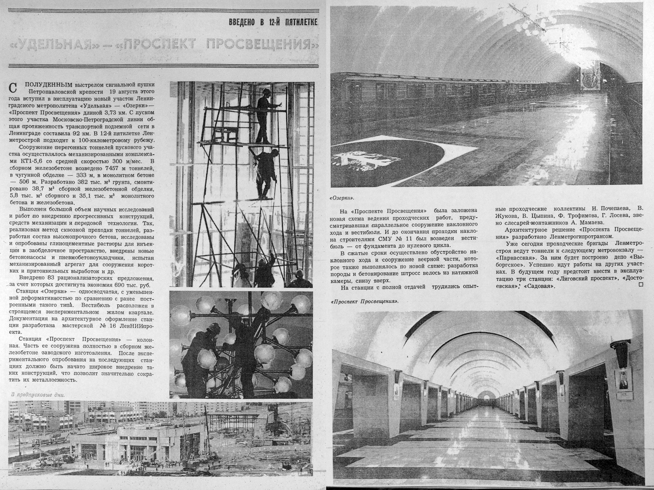 Блок статей, посвящённый открытию станций «Елизаровская» и «Ломоносовская». 1970 год.
