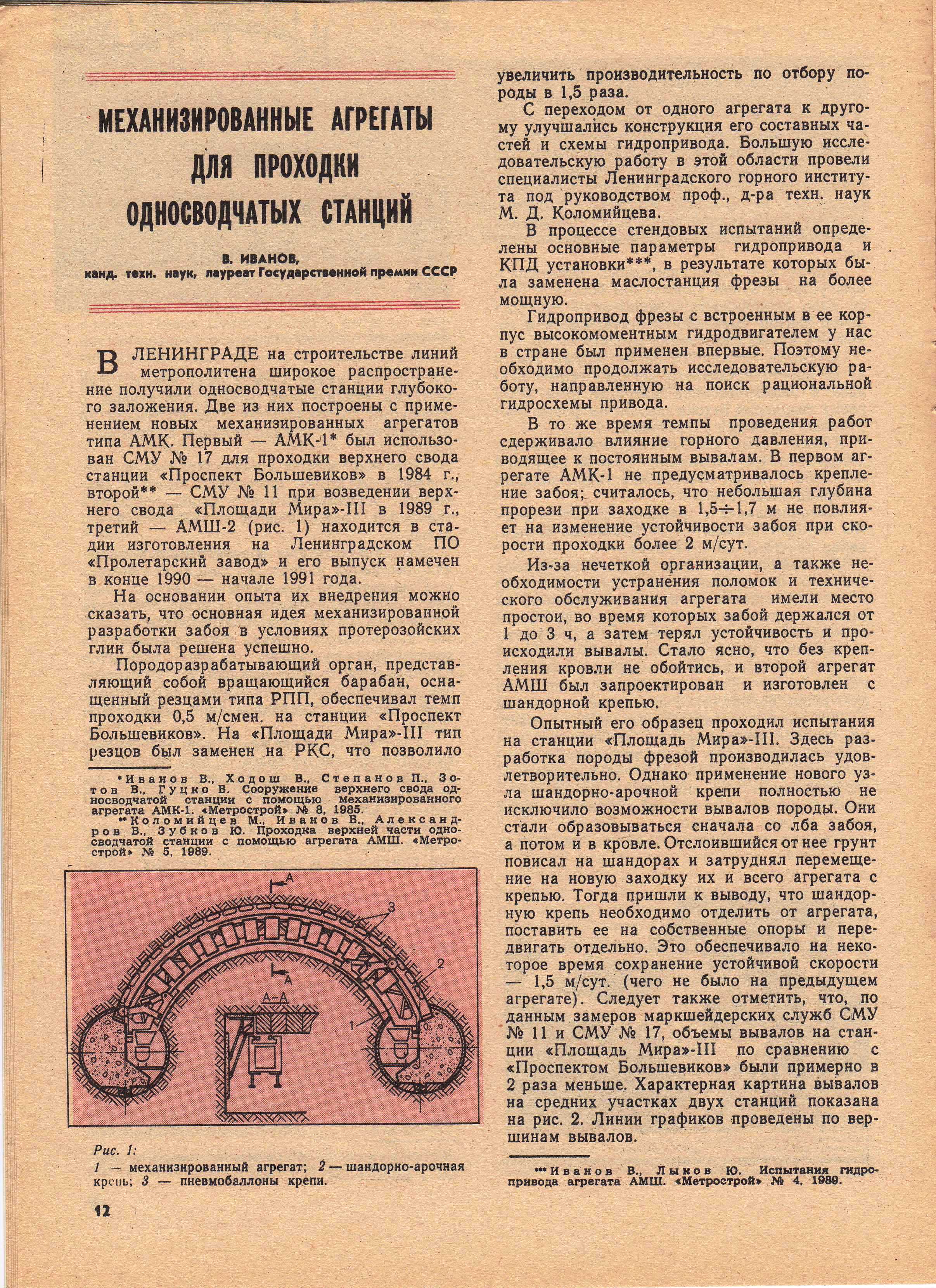 Небольшая подборка статей из журналов "Метрострой", рассказывающих о механизированных агрегатах АМК-1 и АМШ для сооружения верхних сводов односводчатых станций.