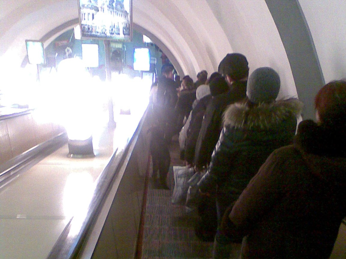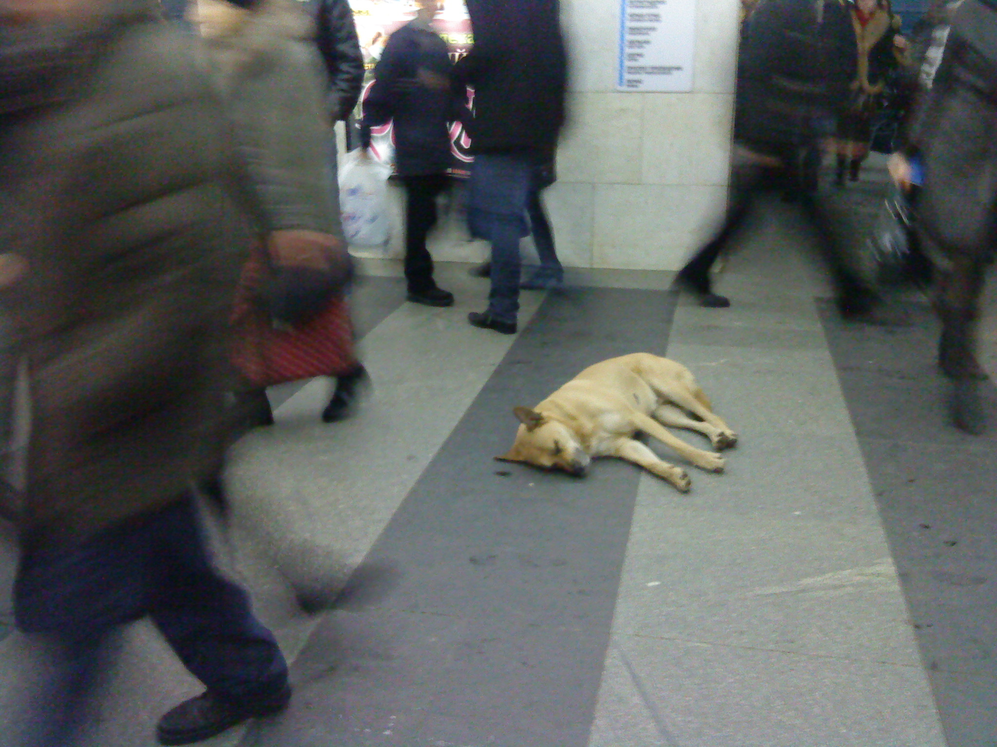 В верхнем вестибюле Нарвской нередко устраивает себе тихий час стая бездомных собак. Часто поперек пассажиропотока, так что комментарий kot'а подходит и для этого случая)