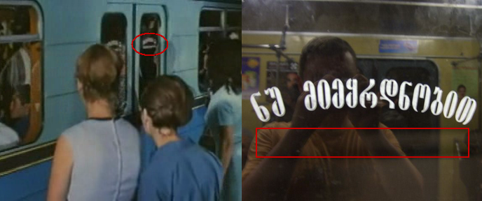 100% дублировались. Вот несколько кадров из старого грузинского фильма "Встреча в горах", показано в нём метро, станция "Руставели", если я не ошибаюсь.Till писал(а):Это действительно небезинтересно. А ещё интересно вот что: в бытность СССР в тбилисском метро все эти надписи не дублировались ли по-русски? Обычно в союзных республиках такая практика была распространена (я не имею в виду именно метрополитены).