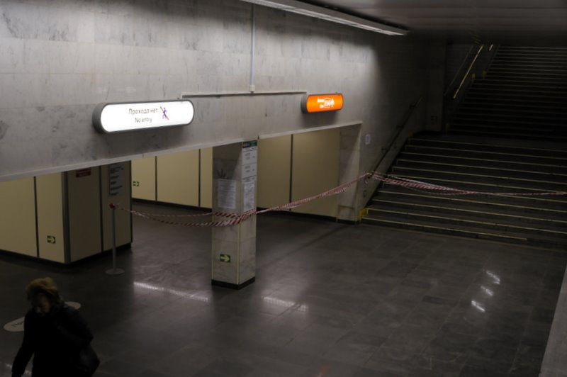 - На фото почти не видно, но у крайнего экскалатора снята гребёнка и несколько ступеней.