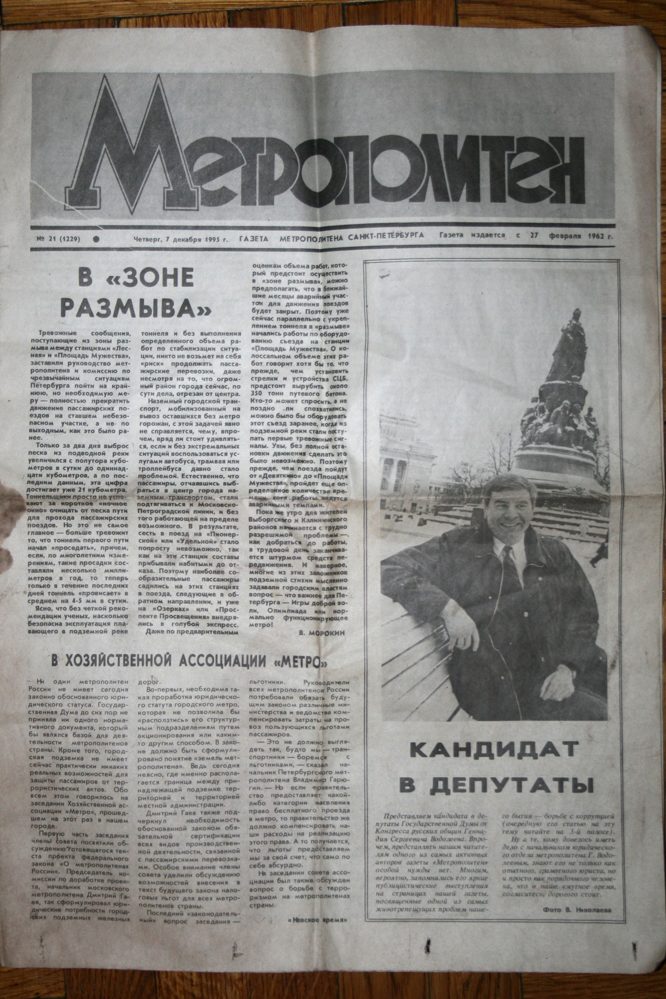 Газета "Метрополитен Санкт-Петербурга" от 7 декабря 1995 г