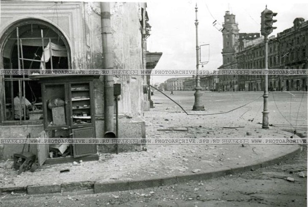 - Поврежденная часть дома №30 по проспекту 25-го Октября, пострадавшего от артиллерийского обстрела. 25 ноября 1941г. Рахмилович А.С.