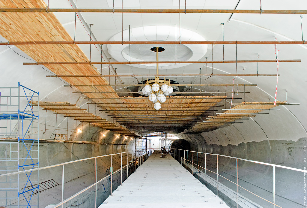 Интересно, что платформа еще не готова, а люстру уже повесили!