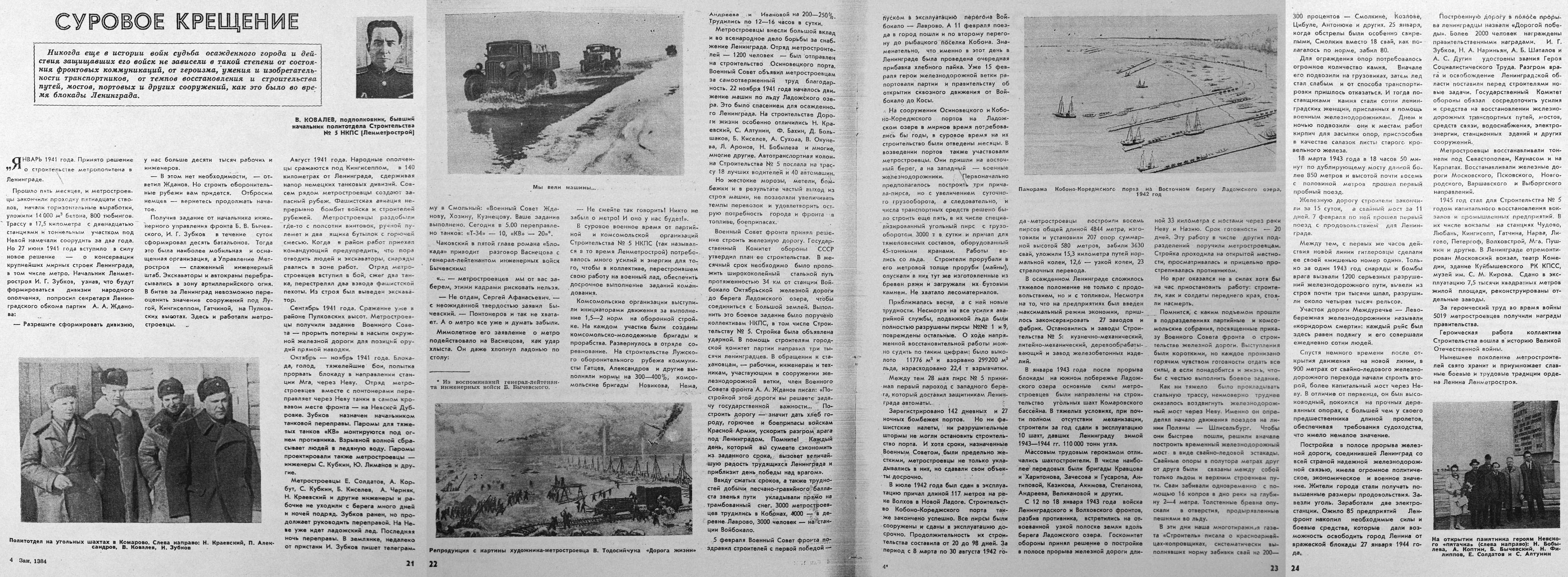 Ниже — статья о работниках Ленметростроя (тогда — Строительства № 5 НКПС), их труде в военное время.