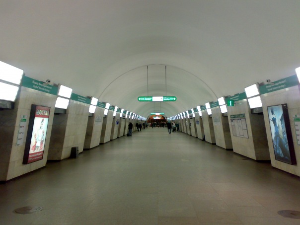 Конечно нельзя не отметить, что на этой станции дела сосисочные обстоят значительно лучше, чем на "Гостином дворе". Как в плане удобства навигации (это моё мнение), так и в плане эстетическом (тут уж, учитывая совершенно маразматический переизбыток указателей на ГД, особых споров быть не должно). И, если бы не зелёные полосы в подземном зале и в наземном вестибюле, я бы принял сторону нашего уважаемого Константина.