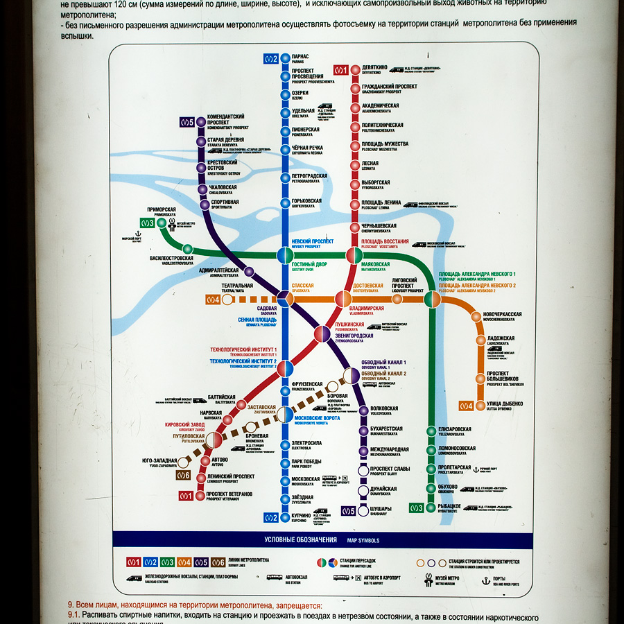 Видел новую в коридоре на Садовой. Смотрится аляповато, конечно (ранее не замечал наложение пунктира ККЛ на КВЛ у пересадки Кировский Завод-Путиловская). И ещё, конечно, наличие рядом карты города, где мало того, что есть доставляющий "Nameless Island" (к вопросу о переводе географических имён собственных), так ещё и ОК и Адмиралтейская всё ещё "under construction".