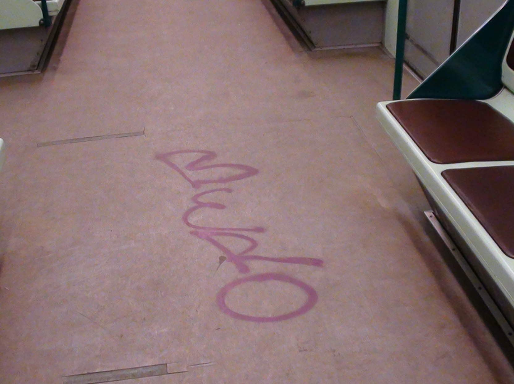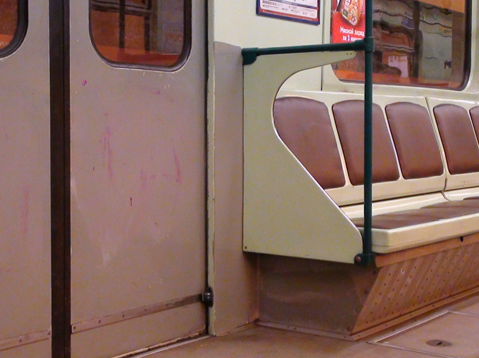 Вчера вечером к своему сожалению обнаружил на "Изумрудном головастике" изрисованный пол и сидушки. Видно, что были стены и двери изрисованы, но пол и сидушки видимо оттирать не стали. Так же, у дверей омерзительная серая краска...