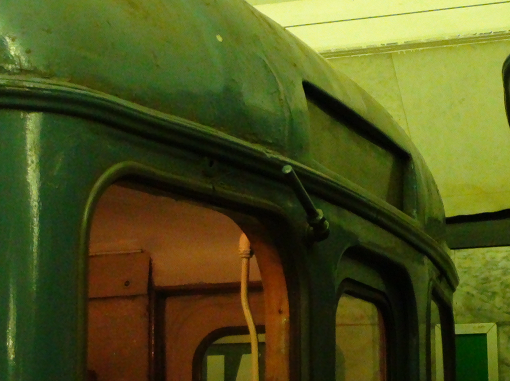 Намедни рассматривал в Интернете фотки вагонов типа Е и понял, что данный девайс явно не опытный, а устанавливавшийся довольно часто либо на заводе, либо в депо. И, судя по всему, он действительно имеет отношение к зеркалам заднего вида (как вариант, - для съёмных зеркал). Правда, на приведённых ниже фото, взятых мною из Интернета, расположение этого девайса немного иное.