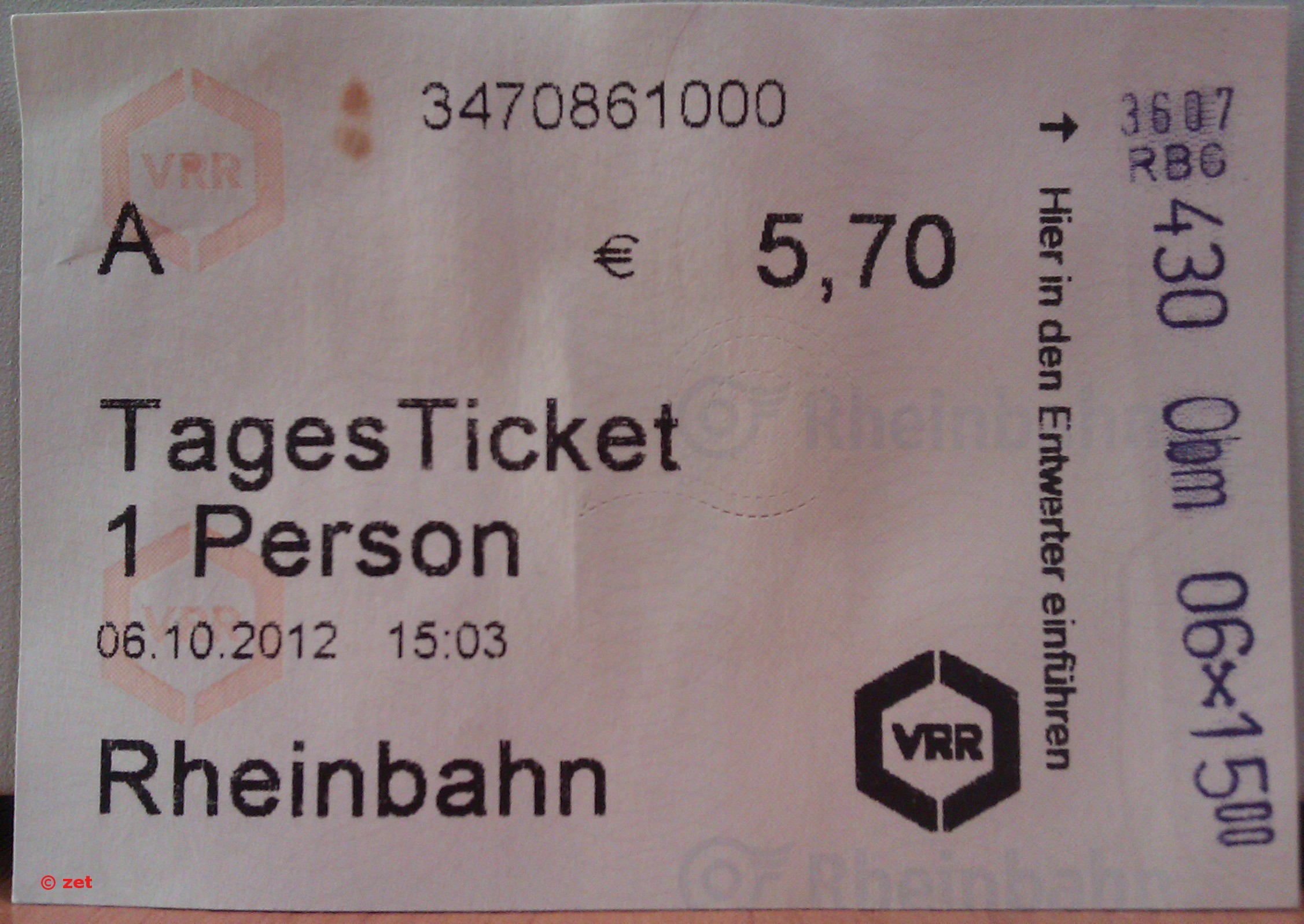 Германия. Дюссельдорф. TagesTicket (Билет на весь день). Действителен весь день на указанную зону для одного человека.