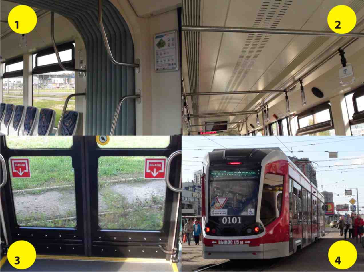 1. Сиденья против движения. Как вообще до такого можно додуматься? В трамвае только одна кабина. Вагон всё время двигается вперёд. Зачем сиденья против движения? Такие места есть как в передней, так и в задней секции...